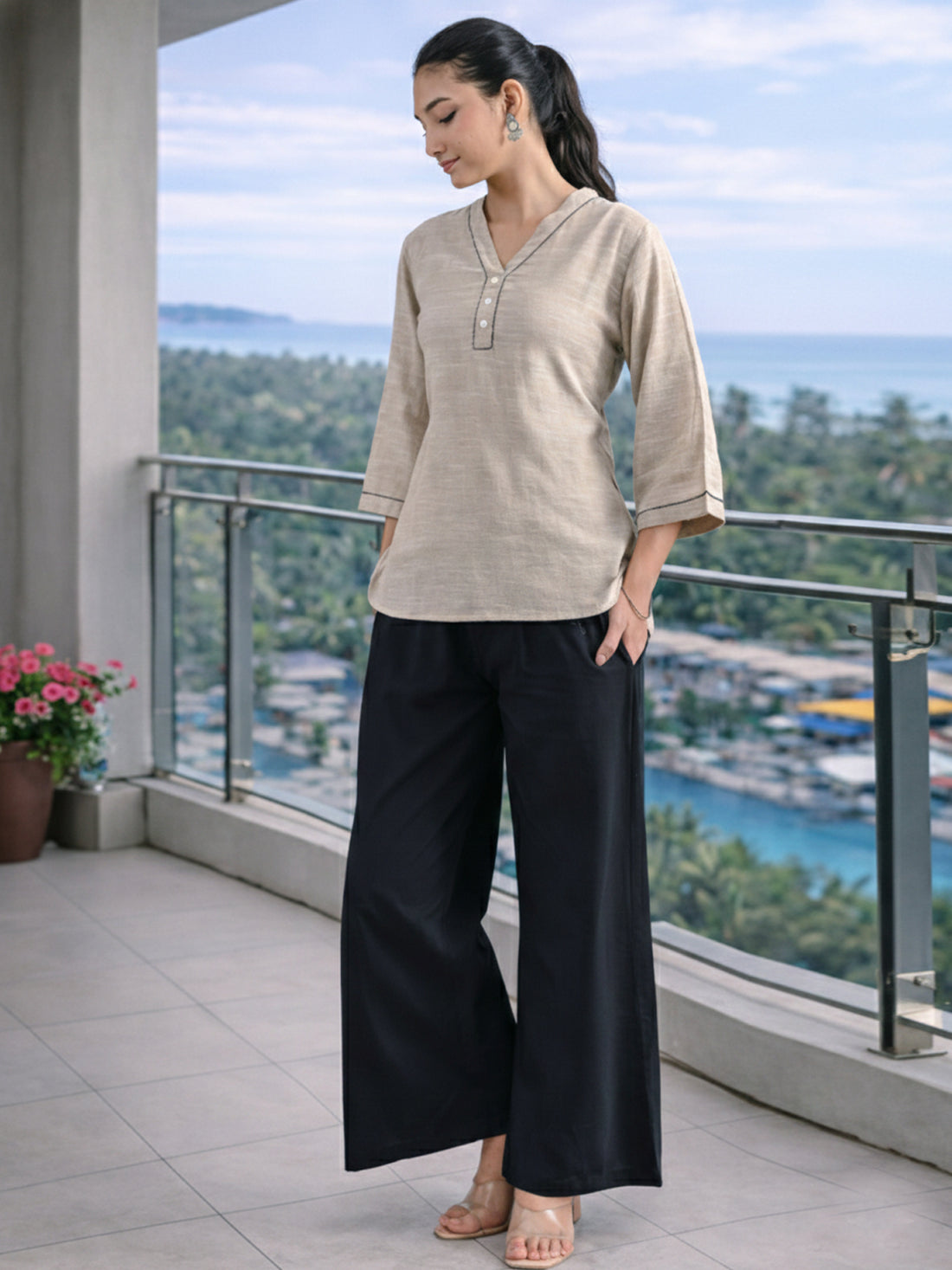 Biscuit Handloom Cotton Anchor Thread Designer Top