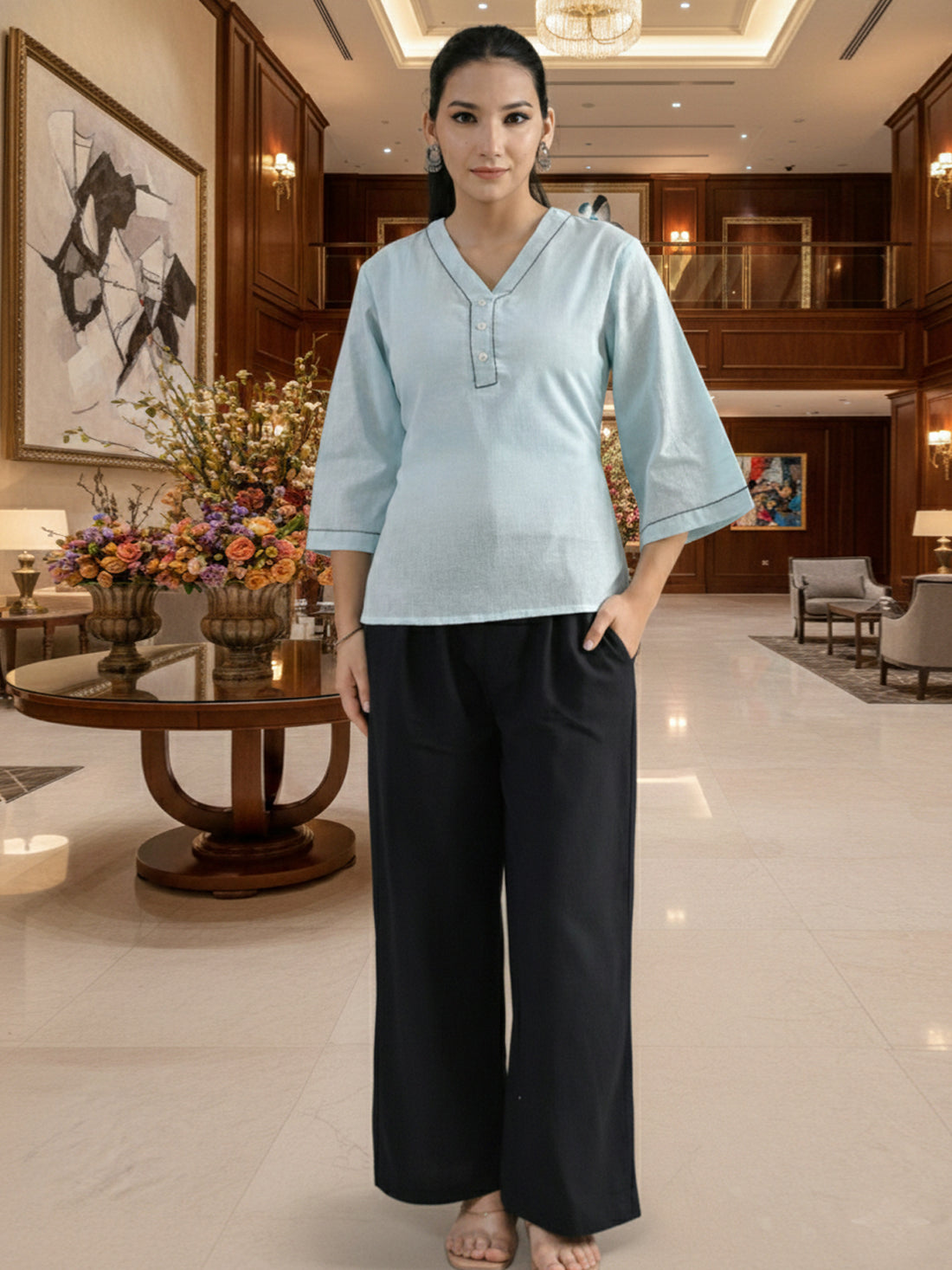 Ice Blue Handloom Cotton Anchor Thread Designer Top