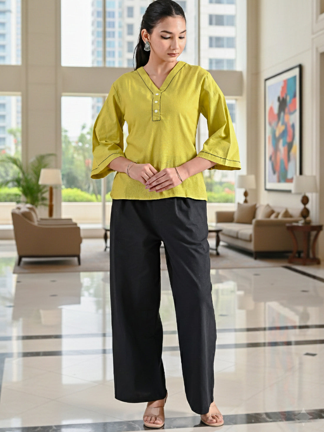 Yellow Airy Linen Cotton Floral Everyday Wear Top for Women