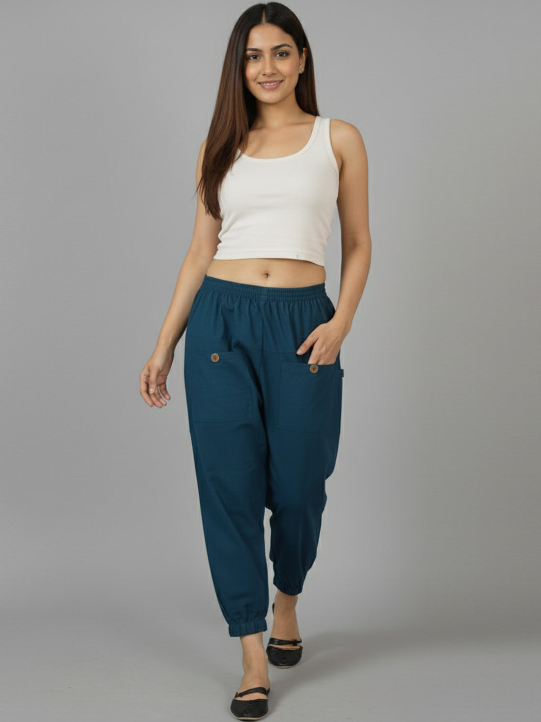 Teal Blue Utility Joggers - Stylish Fit, Multi-Pocket