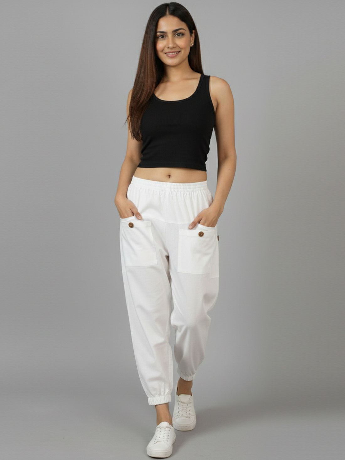 White Utility Joggers - Stylish Fit, Multi-Pocket