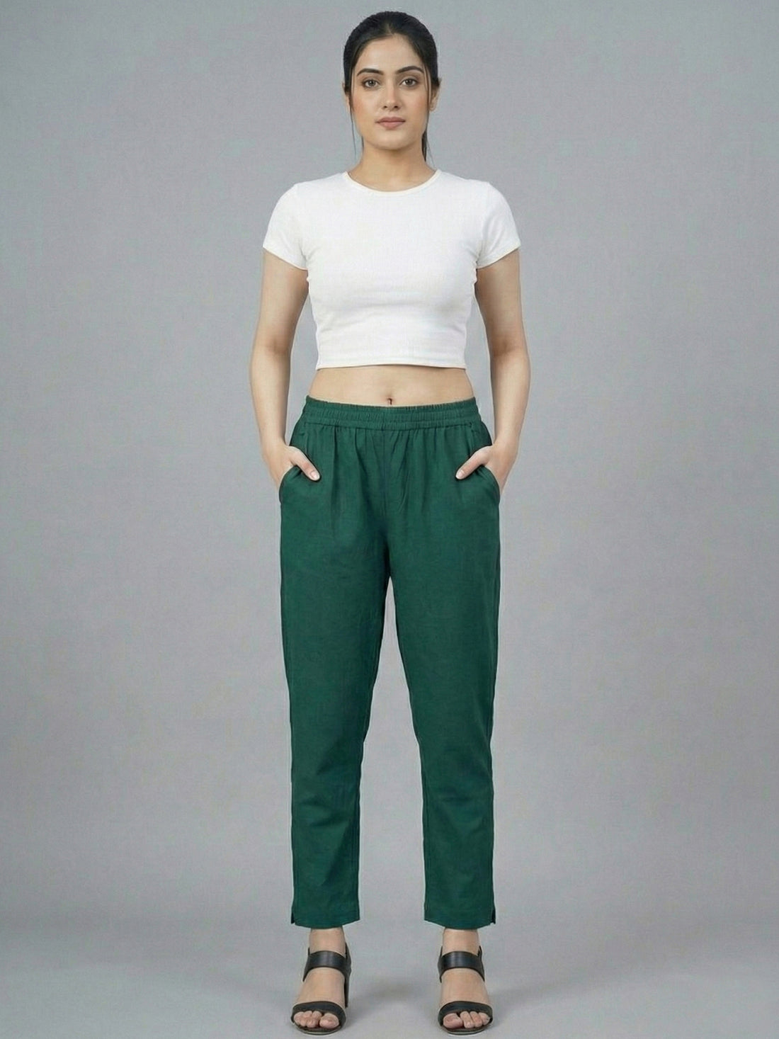 Everyday Bottle Green Cotton Fully Elastic Trouser