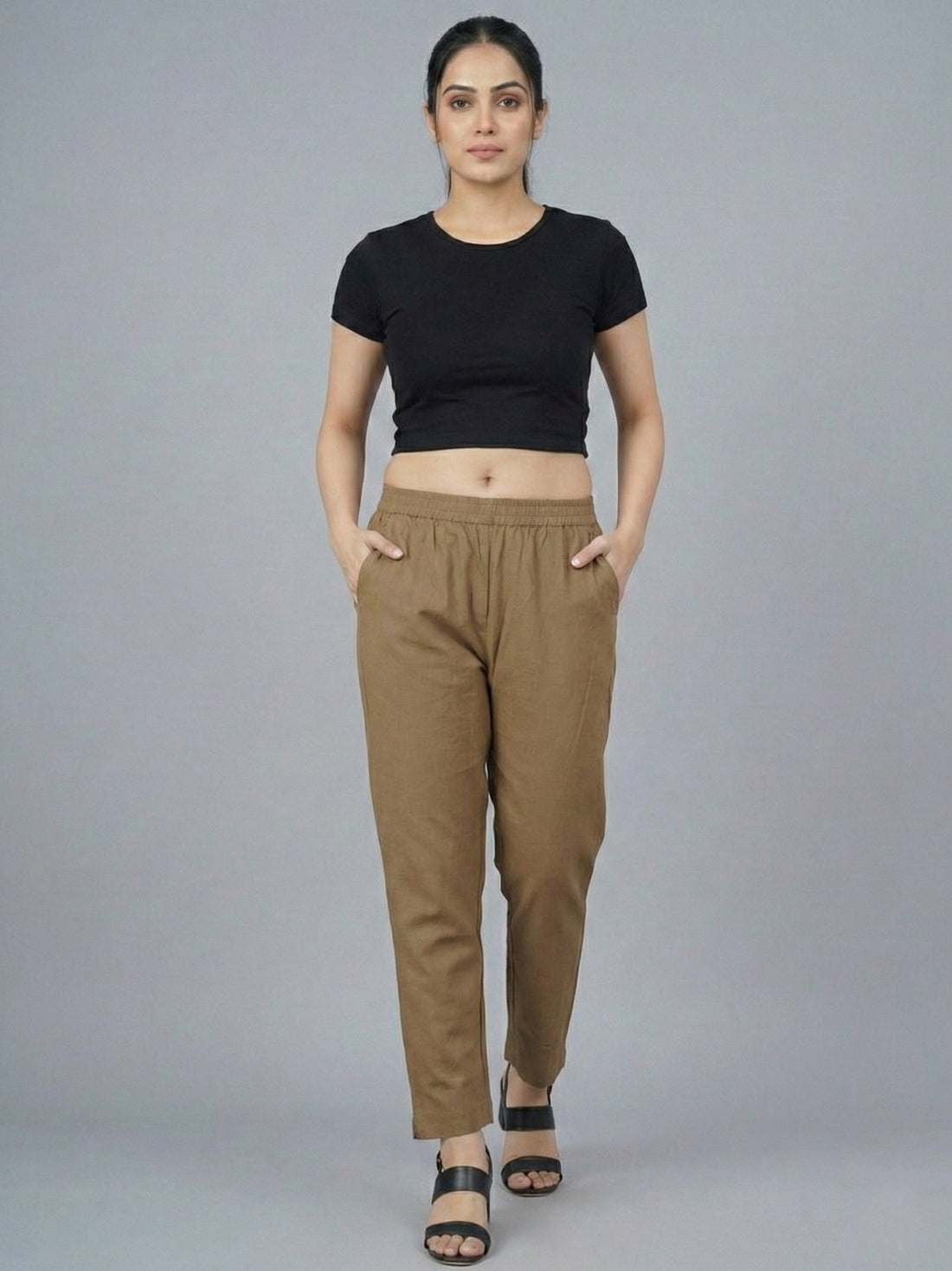 Brown Relaxed Fit Wide Leg Pants - Pure Cotton