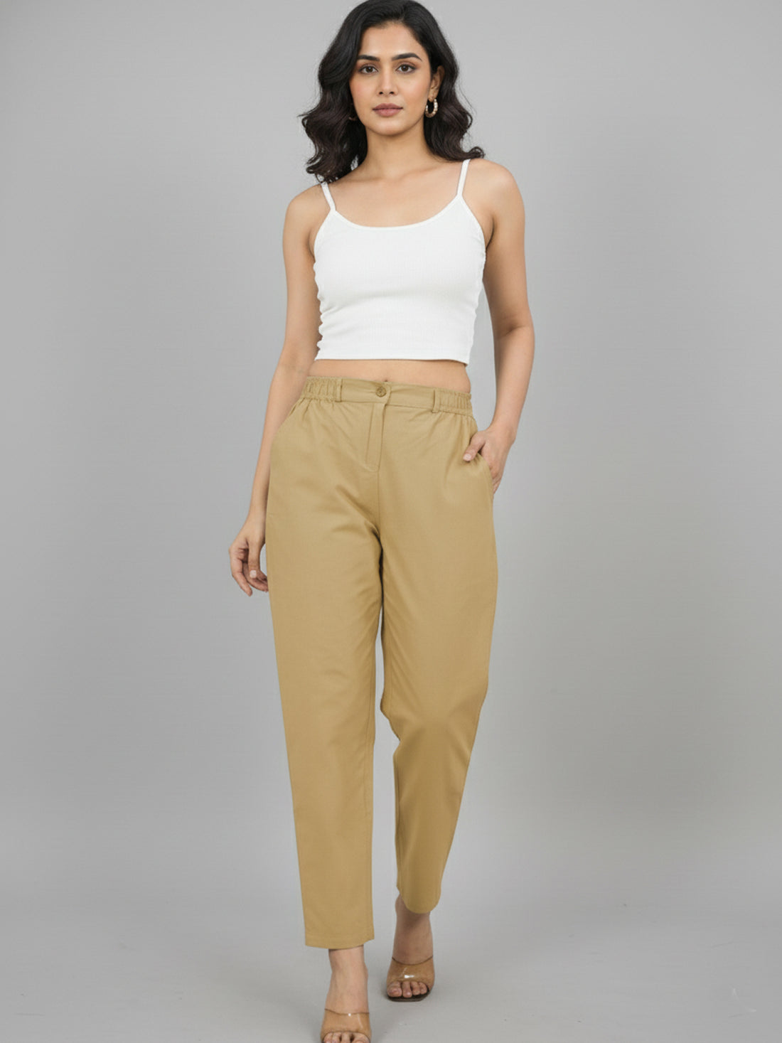 This women’s beige trouser offers a perfect blend of comfort and everyday style. Designed with...
