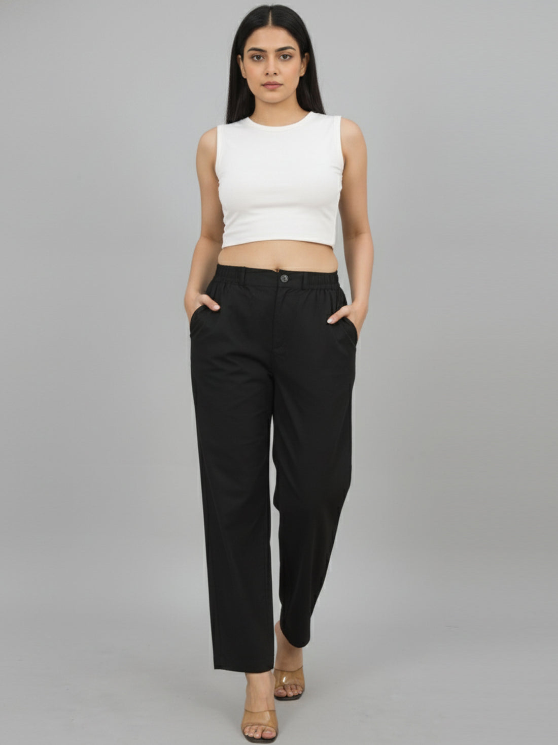 Black Relaxed Fit Wide Leg Pants - Pure Cotton