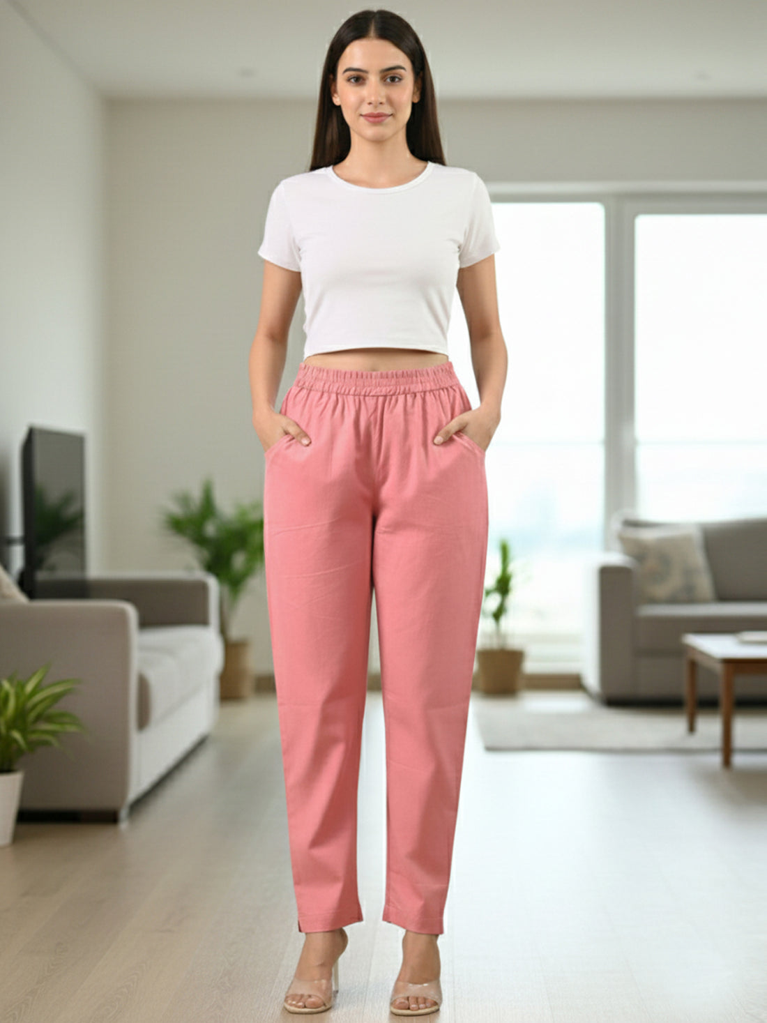 Everyday Mauve Pink Cotton Fully Elastic Trouser