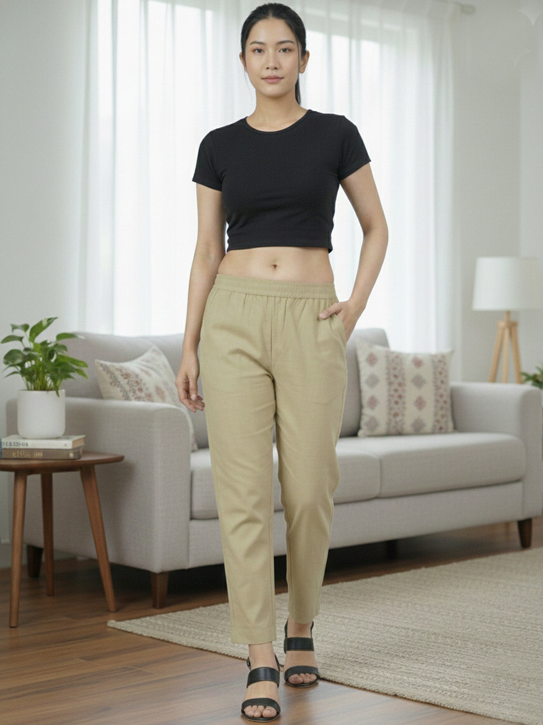 This women’s beige trouser offers a perfect blend of comfort and everyday style. Designed with...