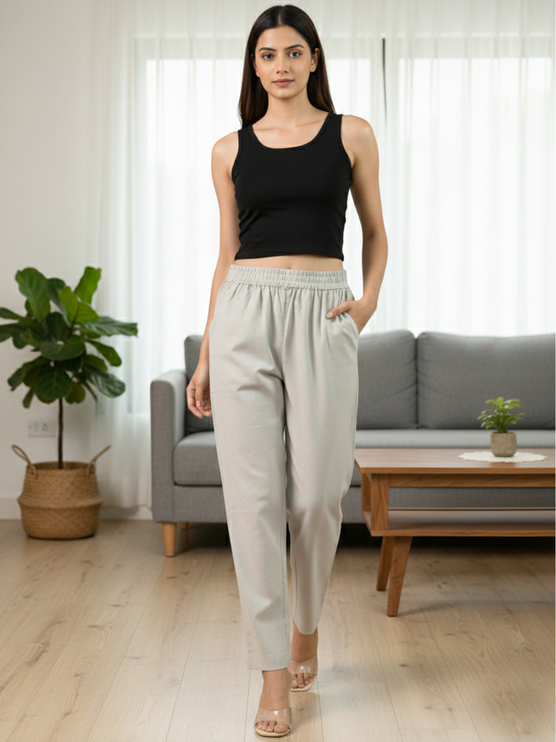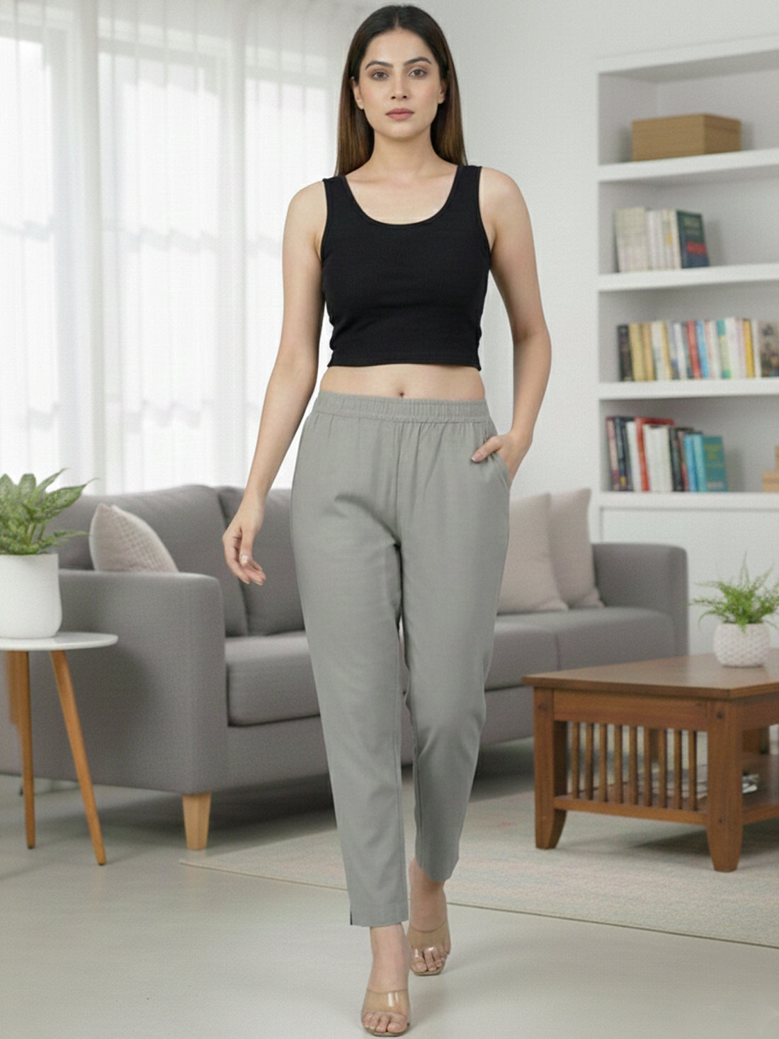 Everyday Grey Cotton Fully Elastic Trouser