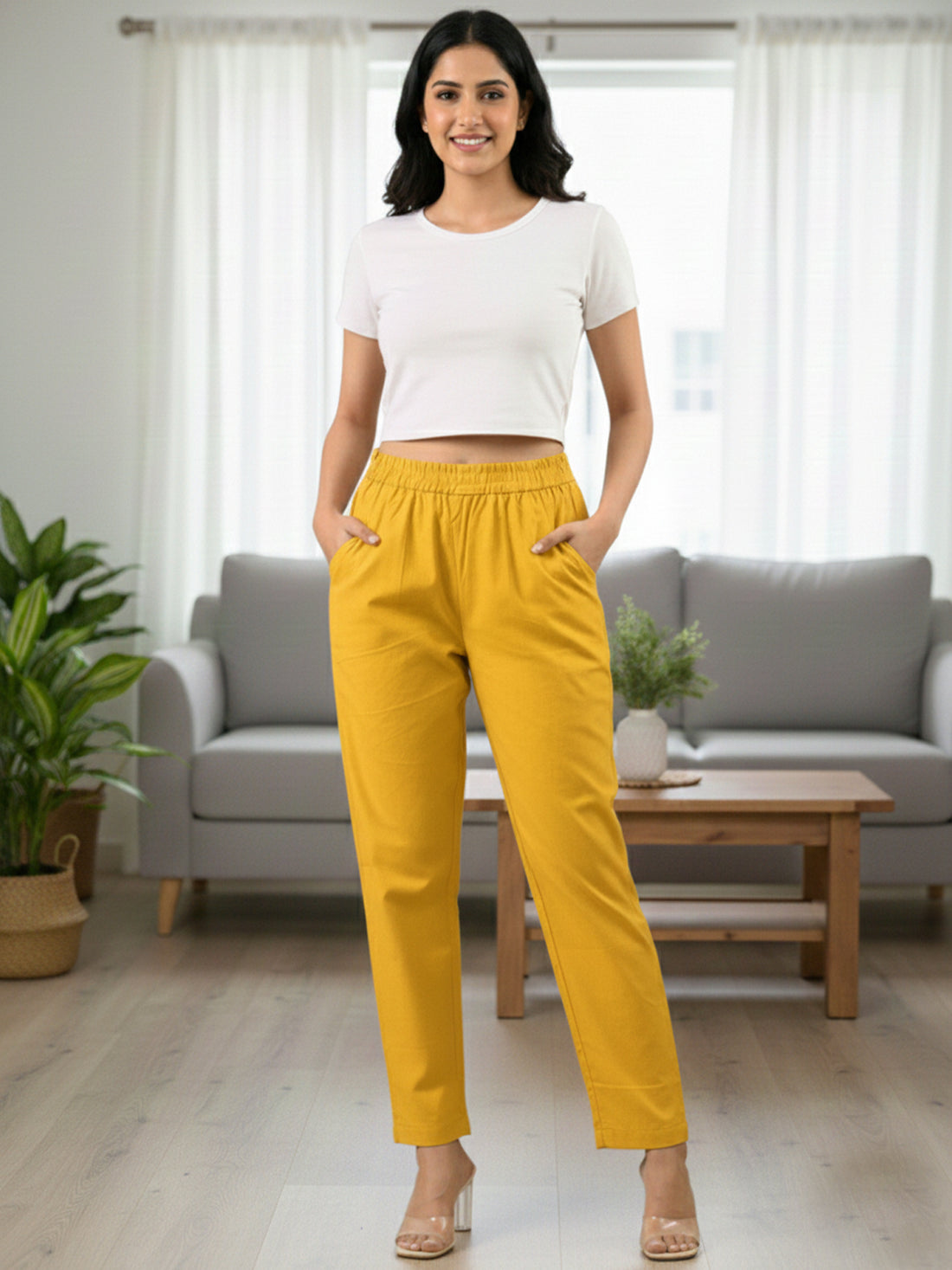 Everyday Mustard Cotton Fully Elastic Trouser