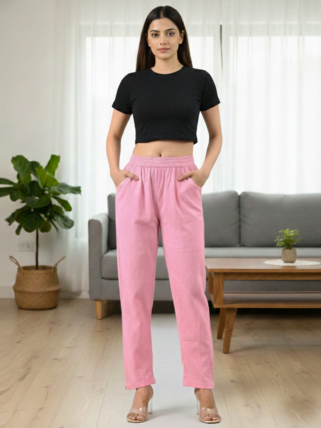 Everyday Pink Cotton Fully Elastic Trouser