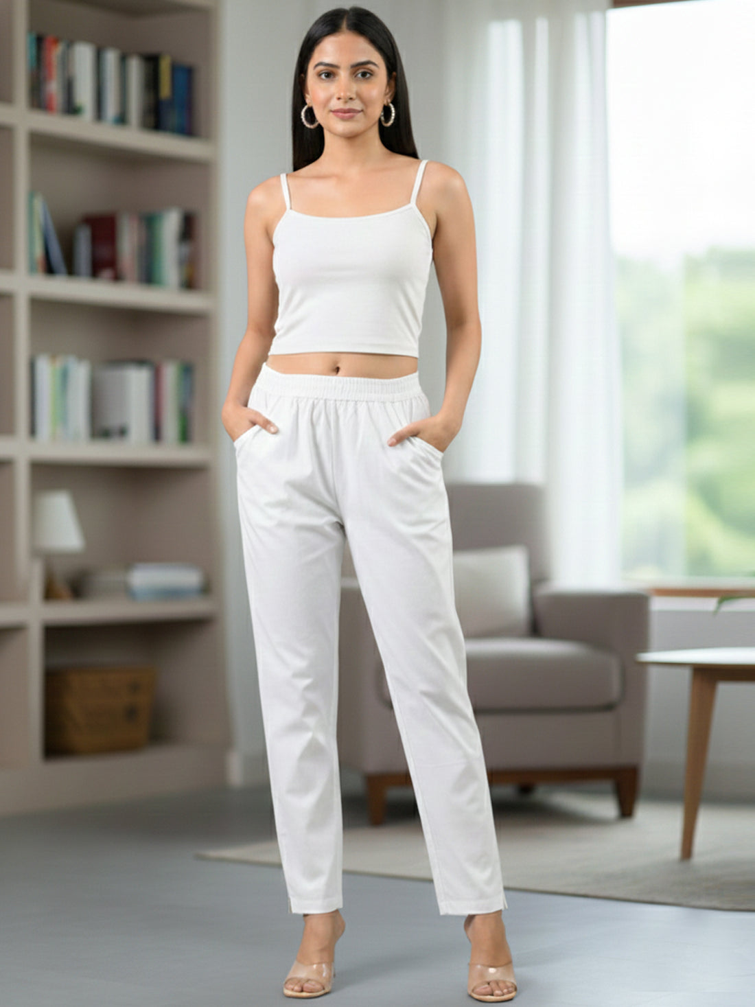 Everyday White Cotton Fully Elastic Trouser