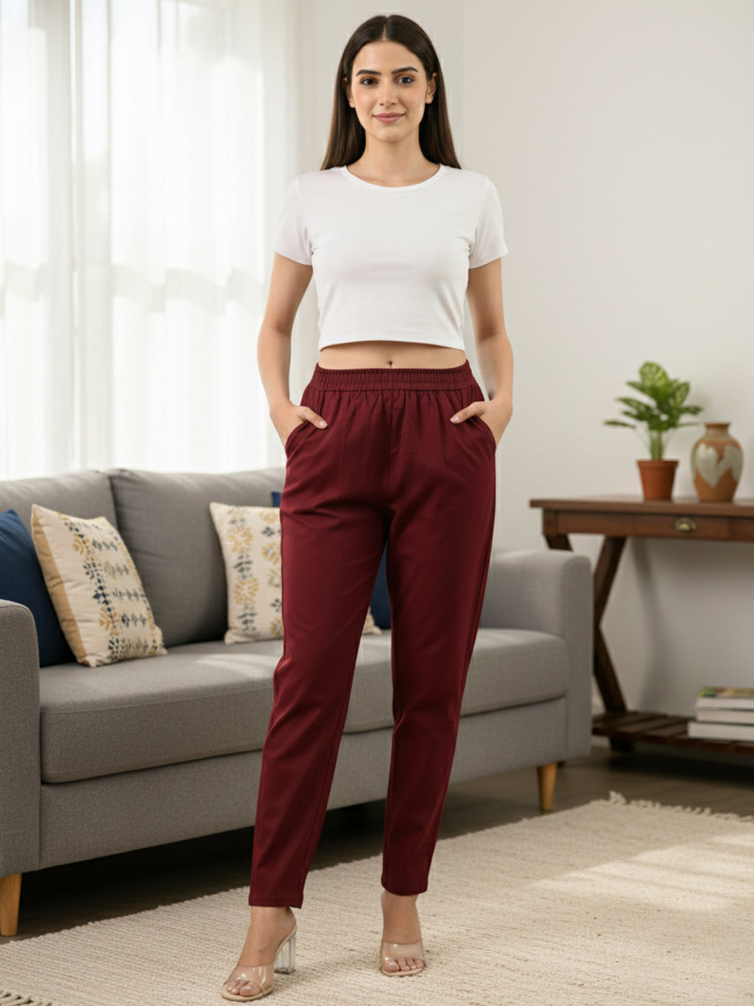 Everyday Wine Cotton Fully Elastic Trouser