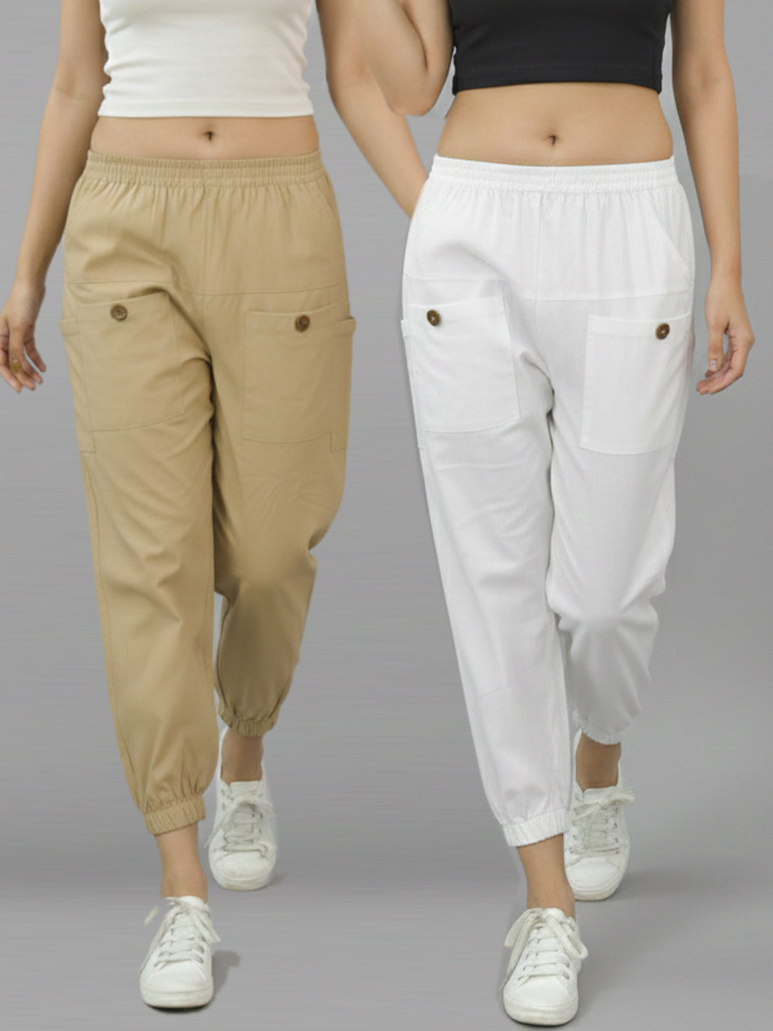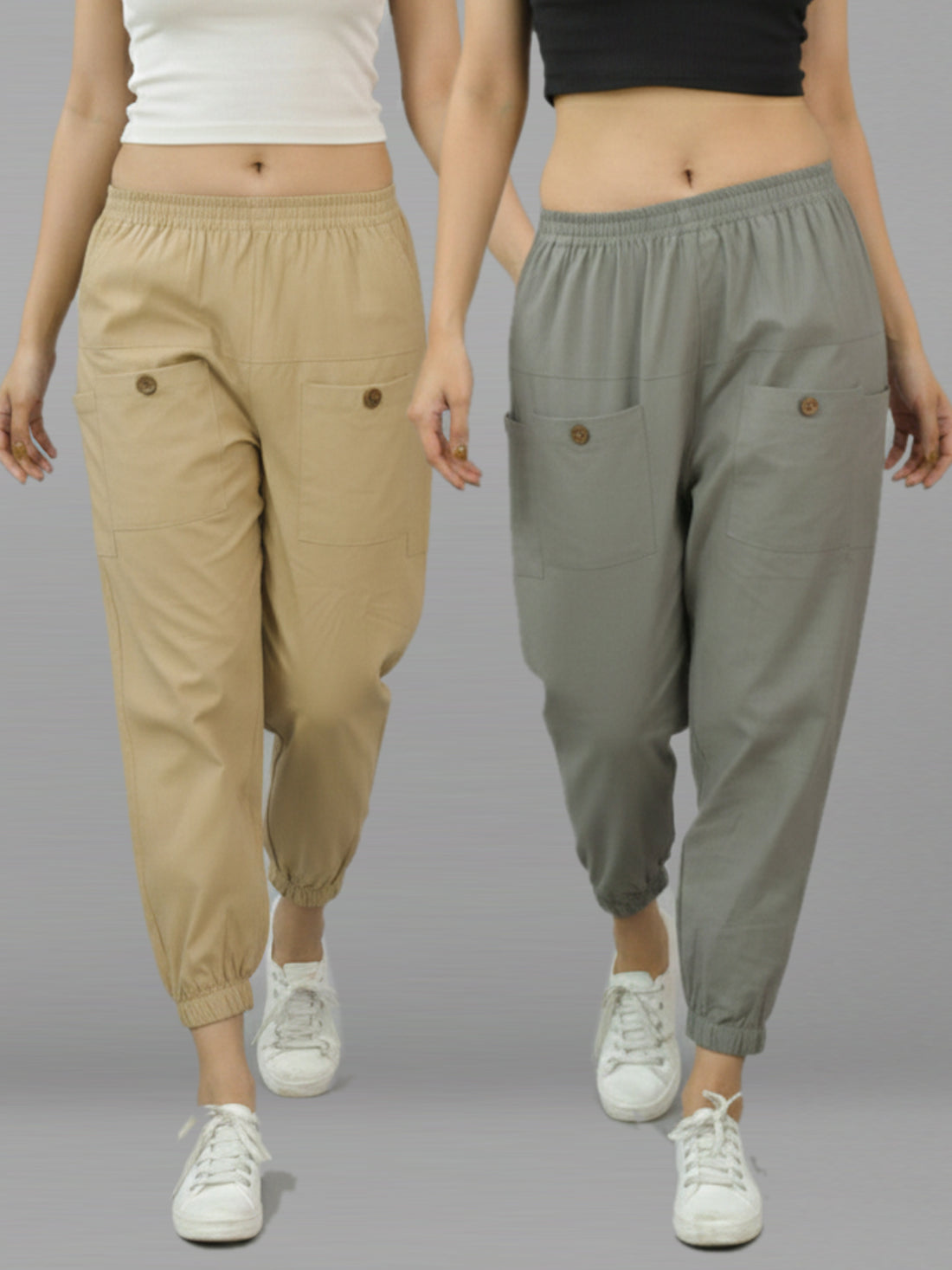 Bundle of 2 Beige & Grey Cotton Joggers