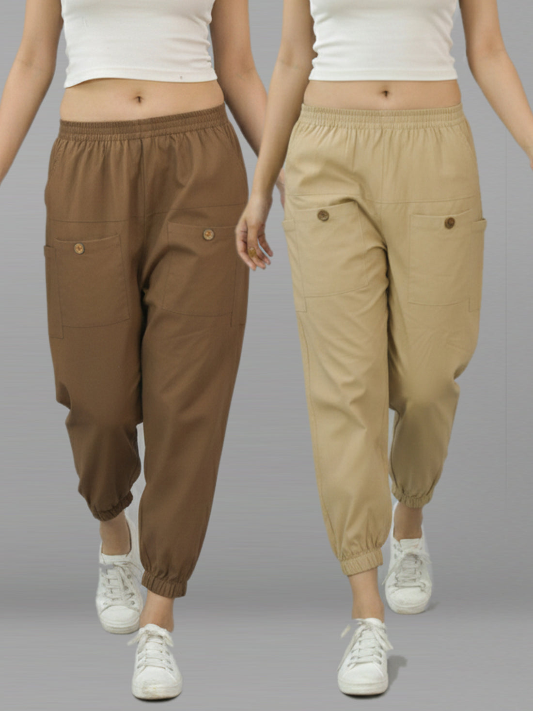 Bundle of 2 Brown & Beige Cotton Joggers