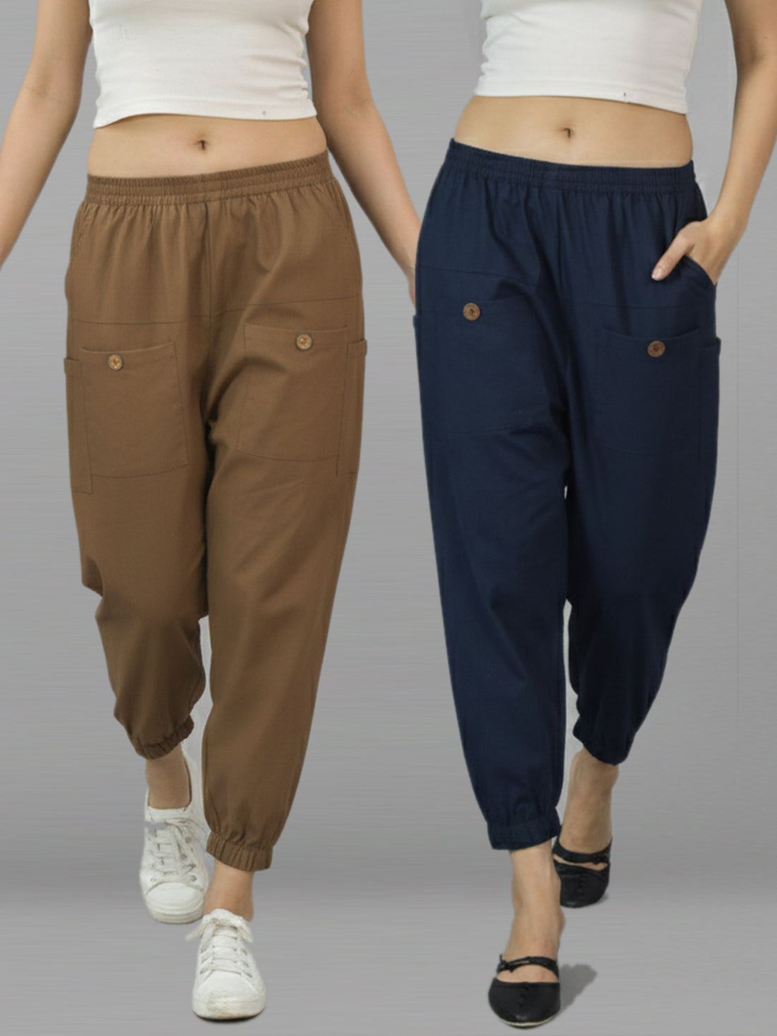 Bundle of 2 Brown & NavyBlue Cotton Joggers