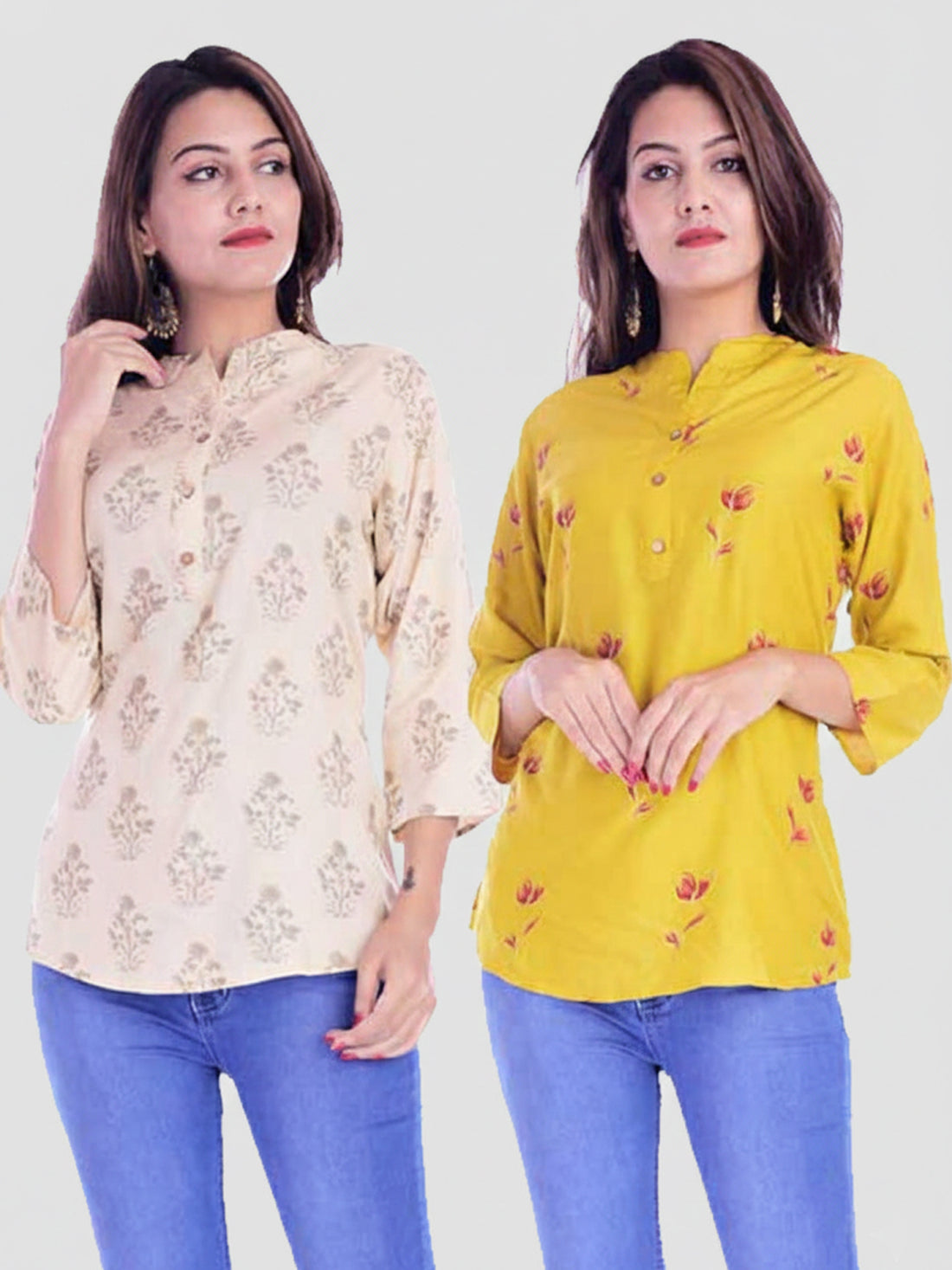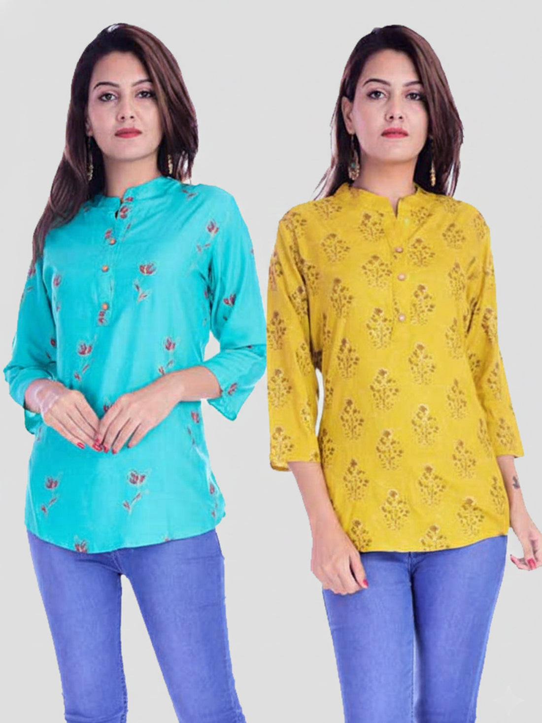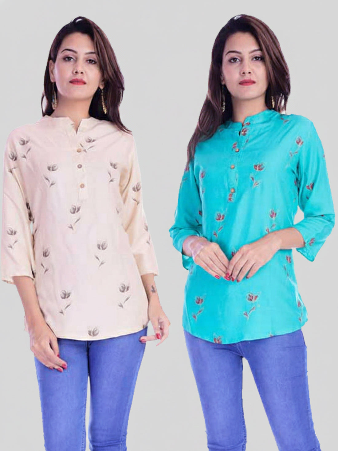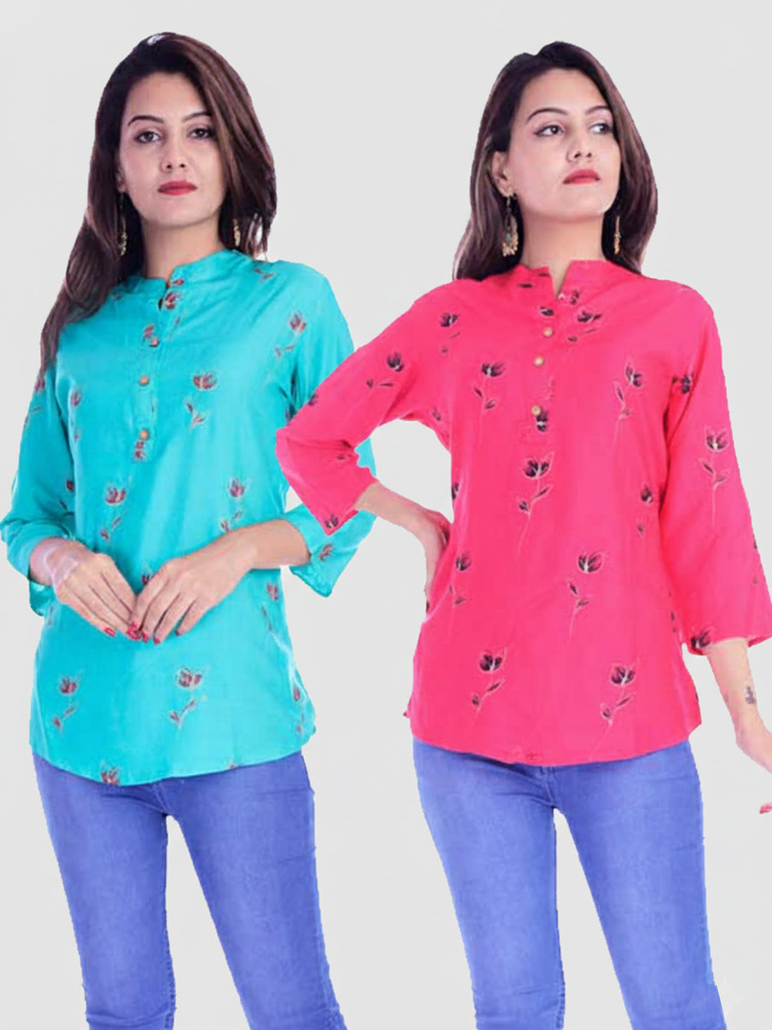 Upgrade your everyday wardrobe with this stylish Womens Bundle of 2 Printed Viscose Tops. Crafted...