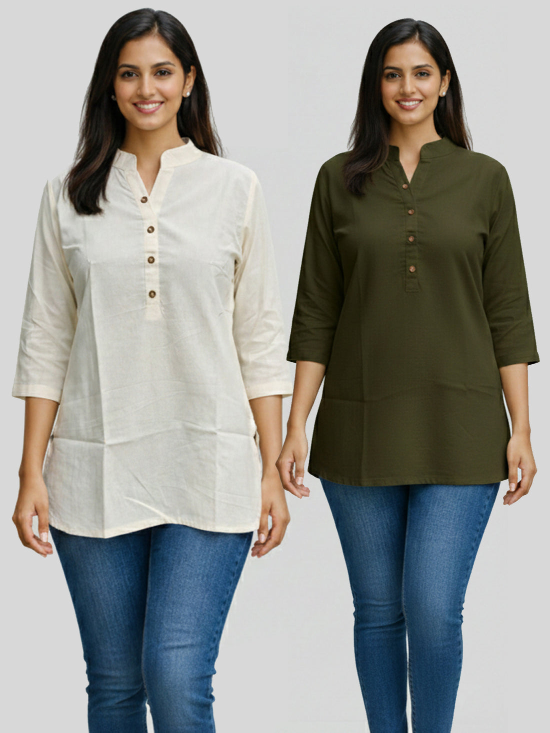 Bundle of 2 Cream & Mehndi Everyday Cotton Tops