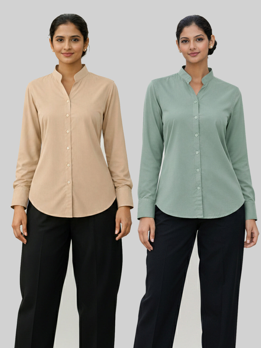 Bundle Of 2 Green And Peach Solid Viscose Shirts