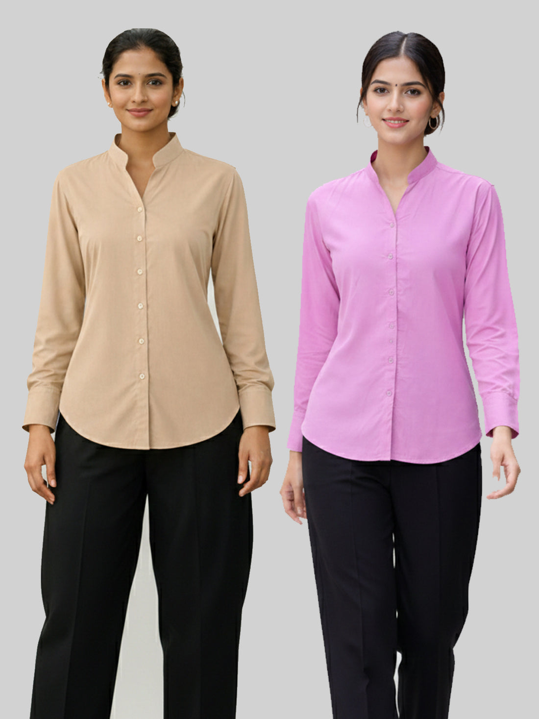 bundle Of 2 Chiku And Peach Solid Viscose Shirts