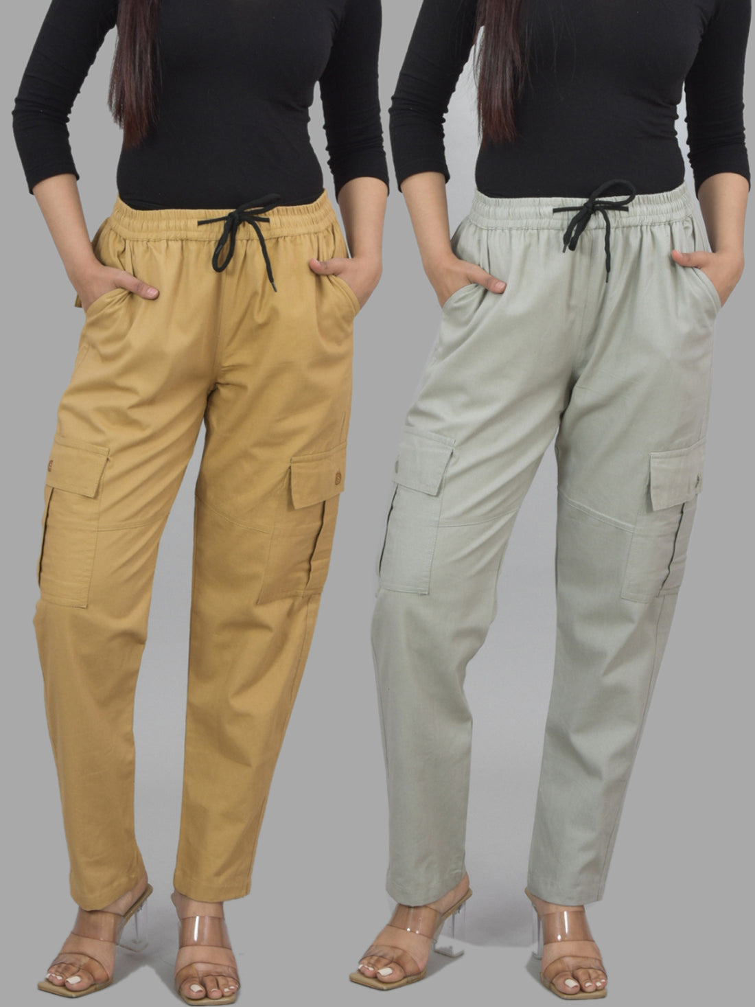 Bundle of 2 Beige & Melange Utility 5-Pocket Cargo Pants