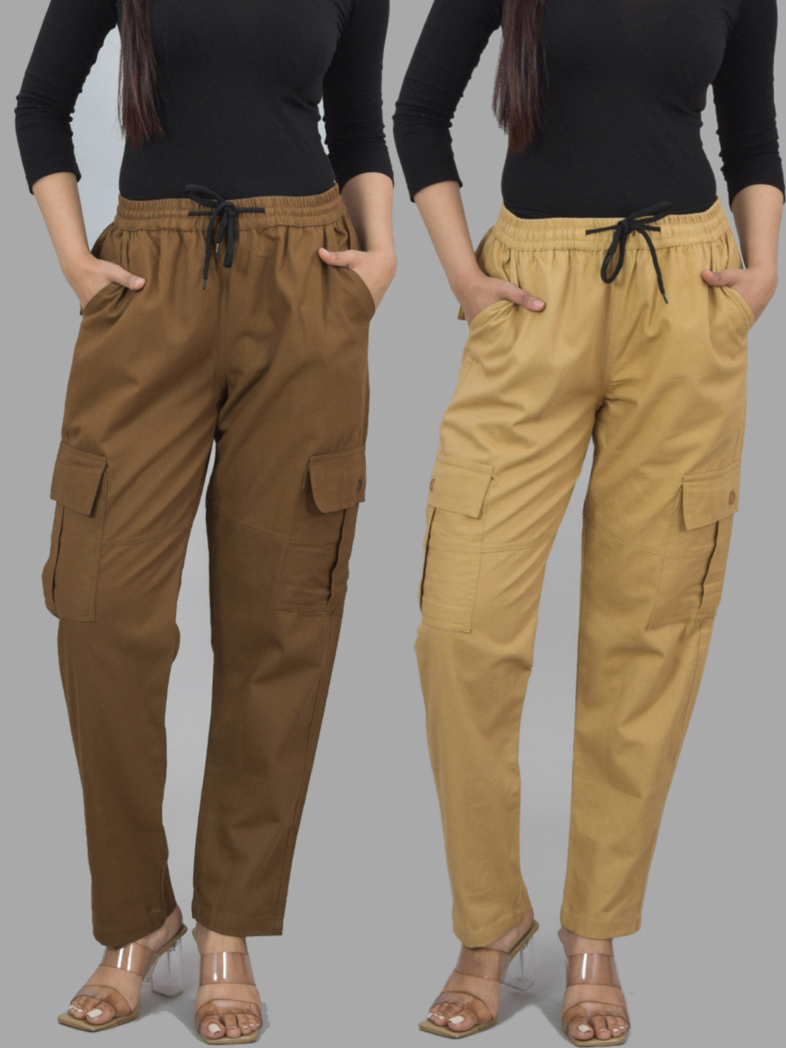 Bundle of 2 Brown & Beige Utility 5-Pocket Cargo Pants