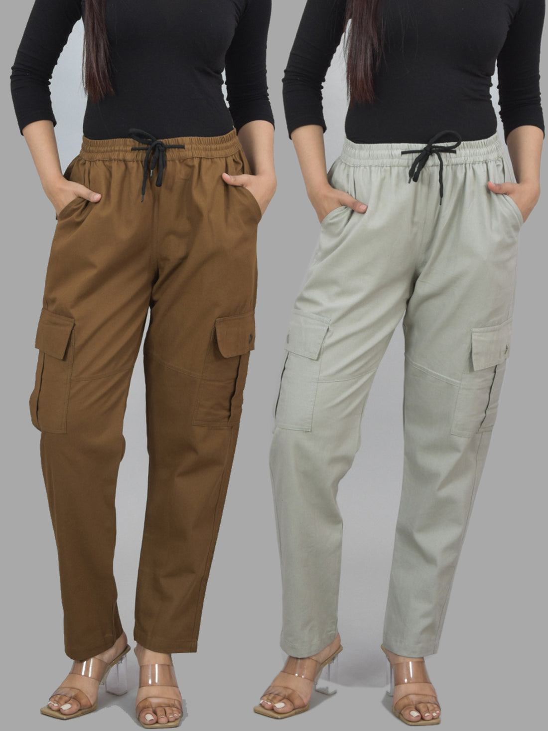 Bundle of 2 Brown & Grey Utility 5-Pocket Cargo Pants