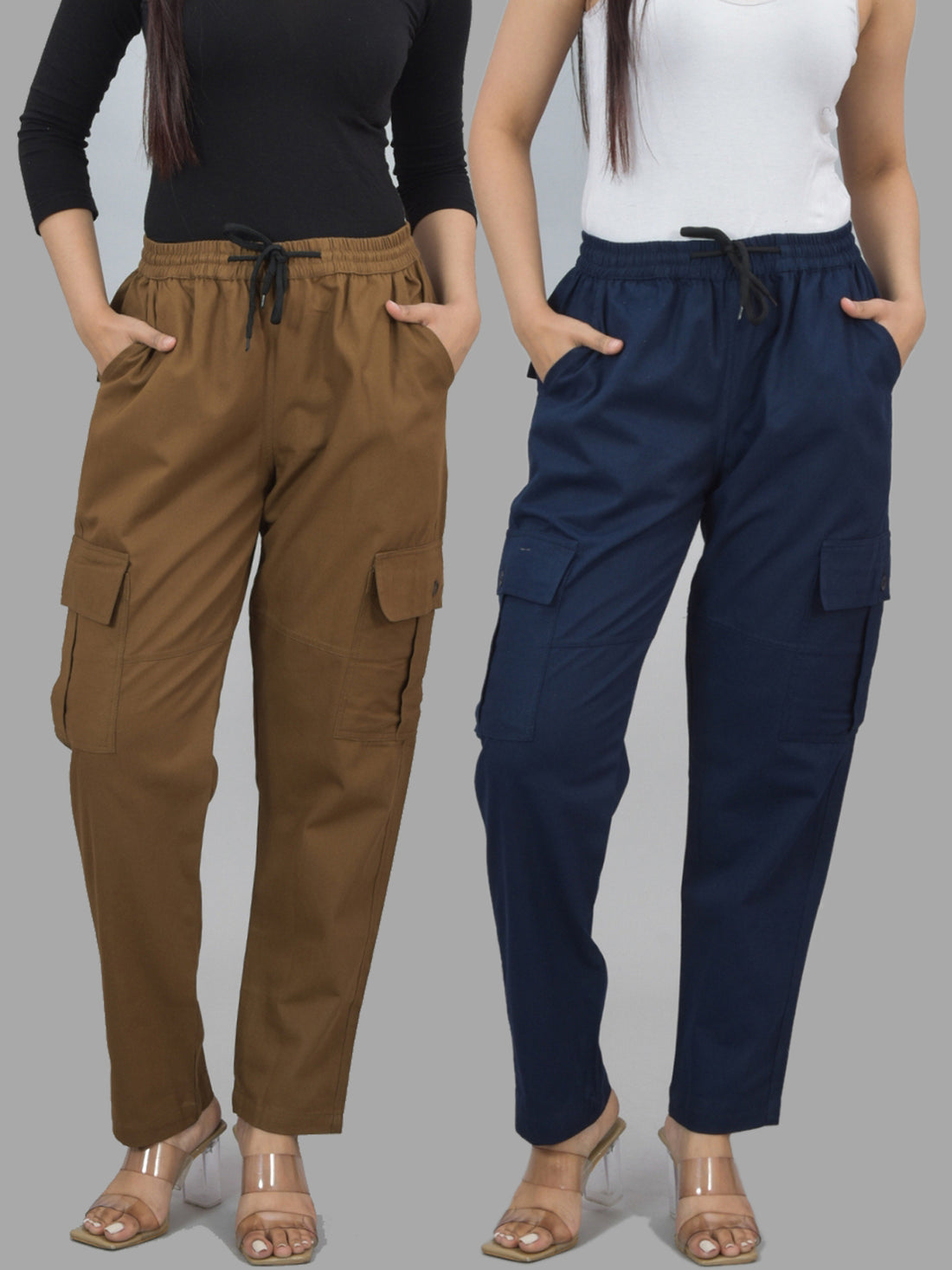 Bundle of 2 Brown & NavyBlue Utility 5-Pocket Cargo Pants