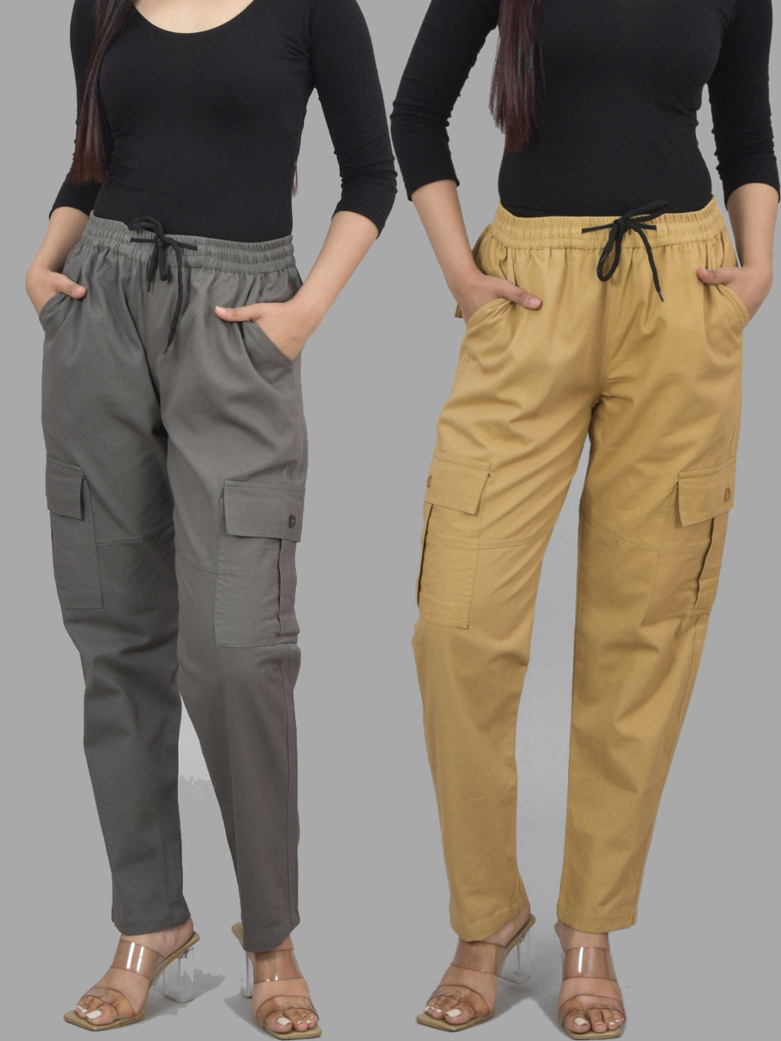 Bundle of 2 Grey & Beige Utility 5-Pocket Cargo Pants