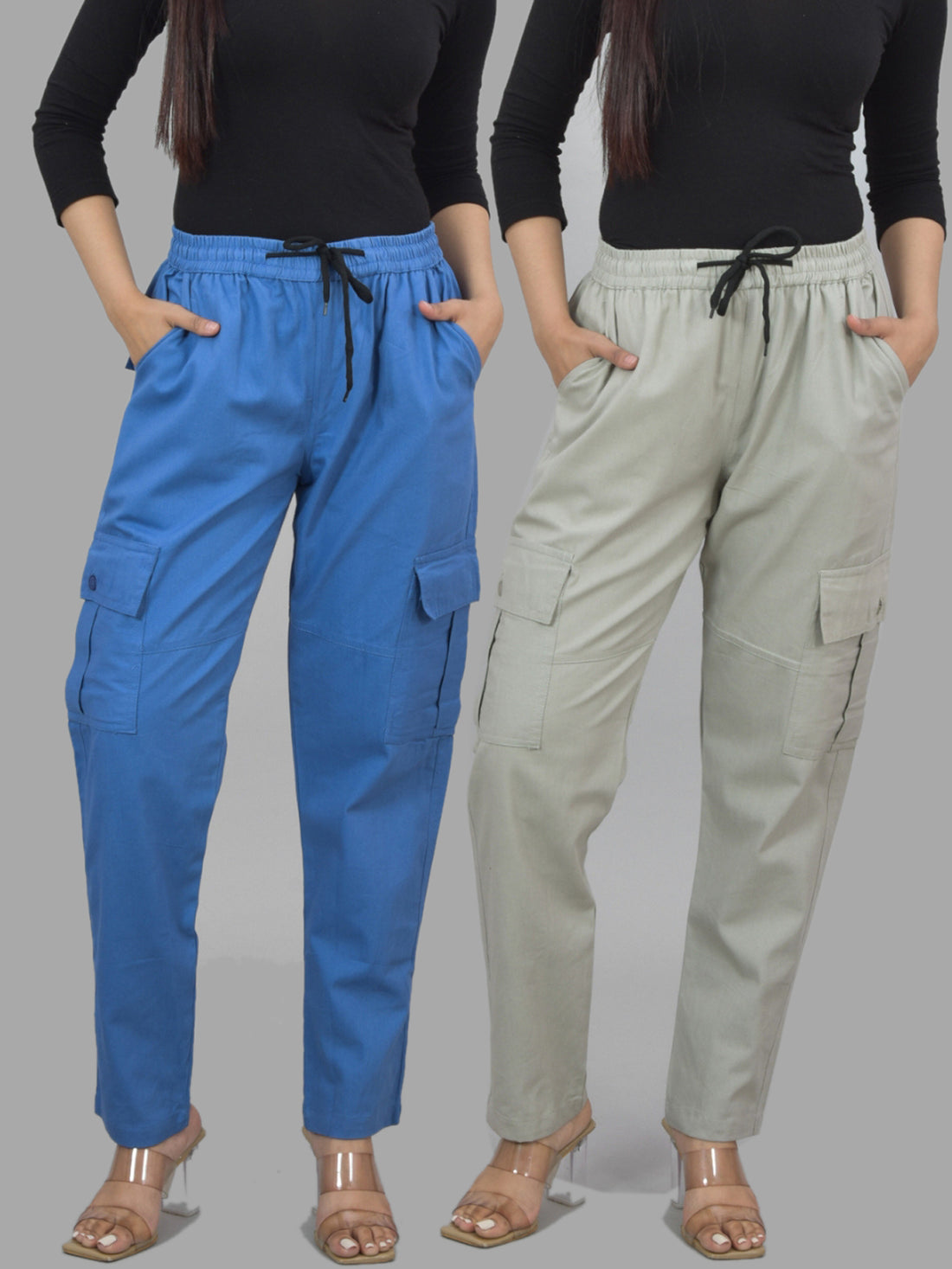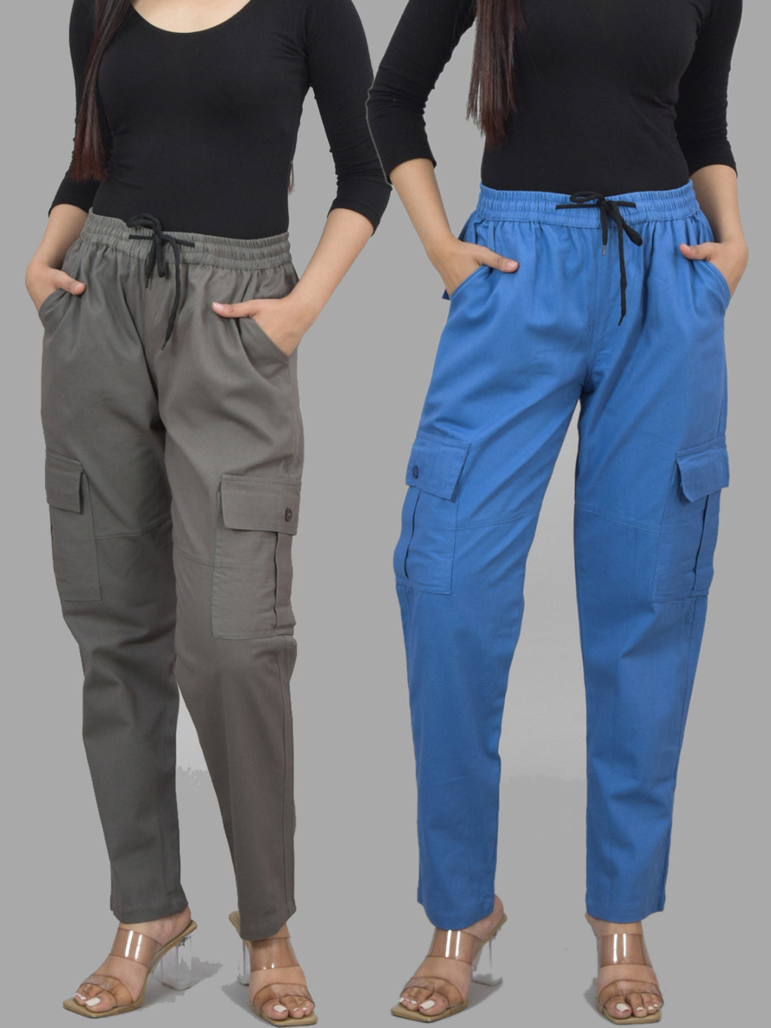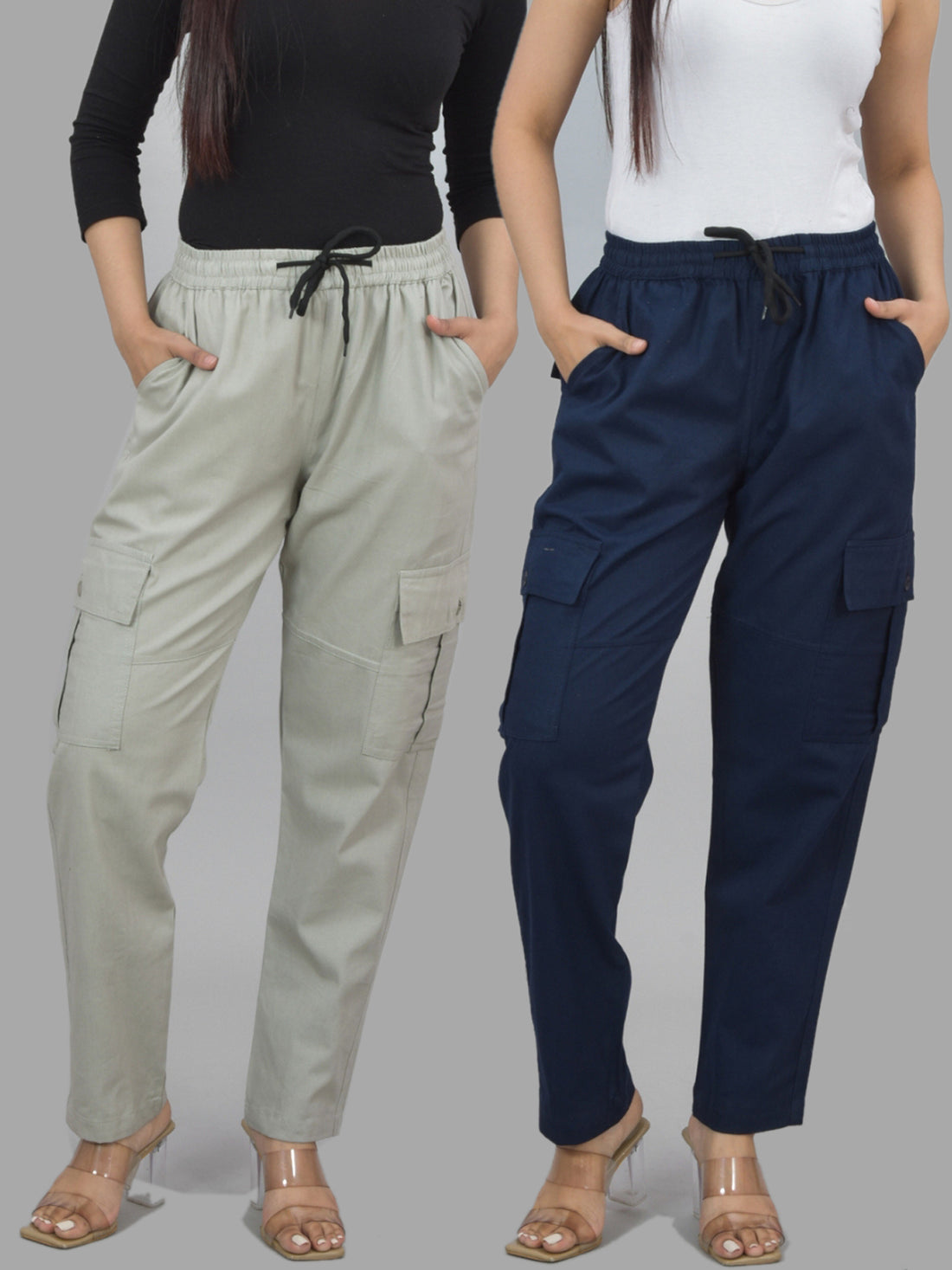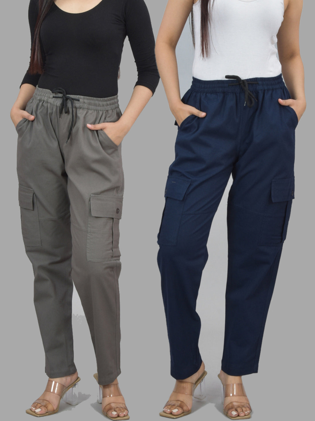 Bundle of 2 Grey & NavyBlue Utility 5-Pocket Cargo Pants