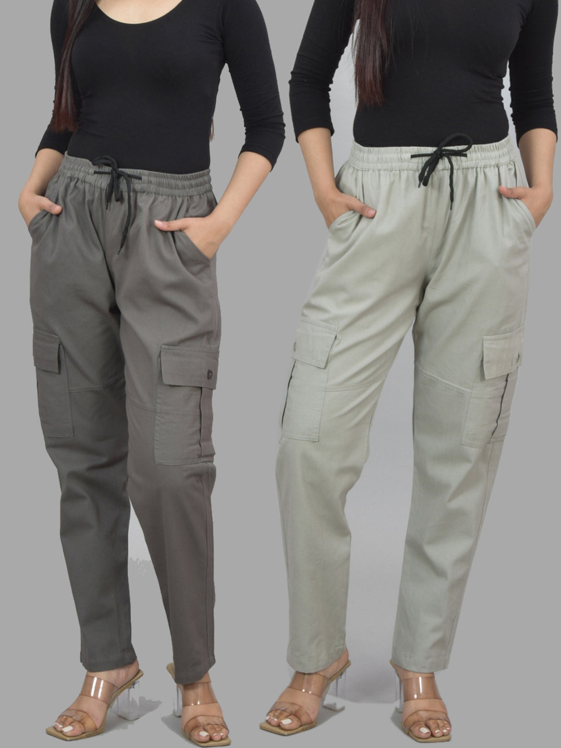 Bundle of 2 Grey & Melange Utility 5-Pocket Cargo Pants