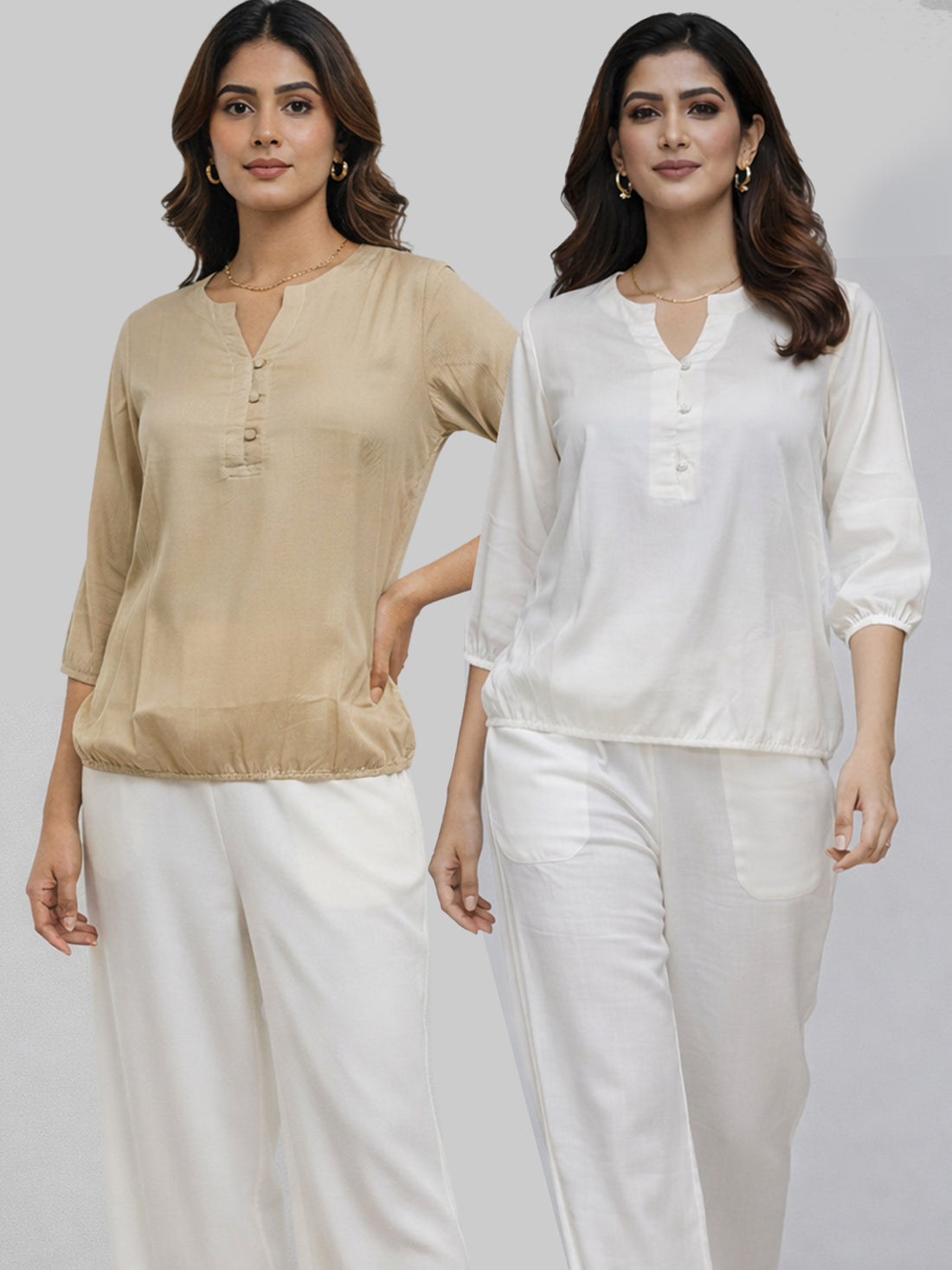 Bundle of 2 Beige & Cream Viscose Waist Fit Tops