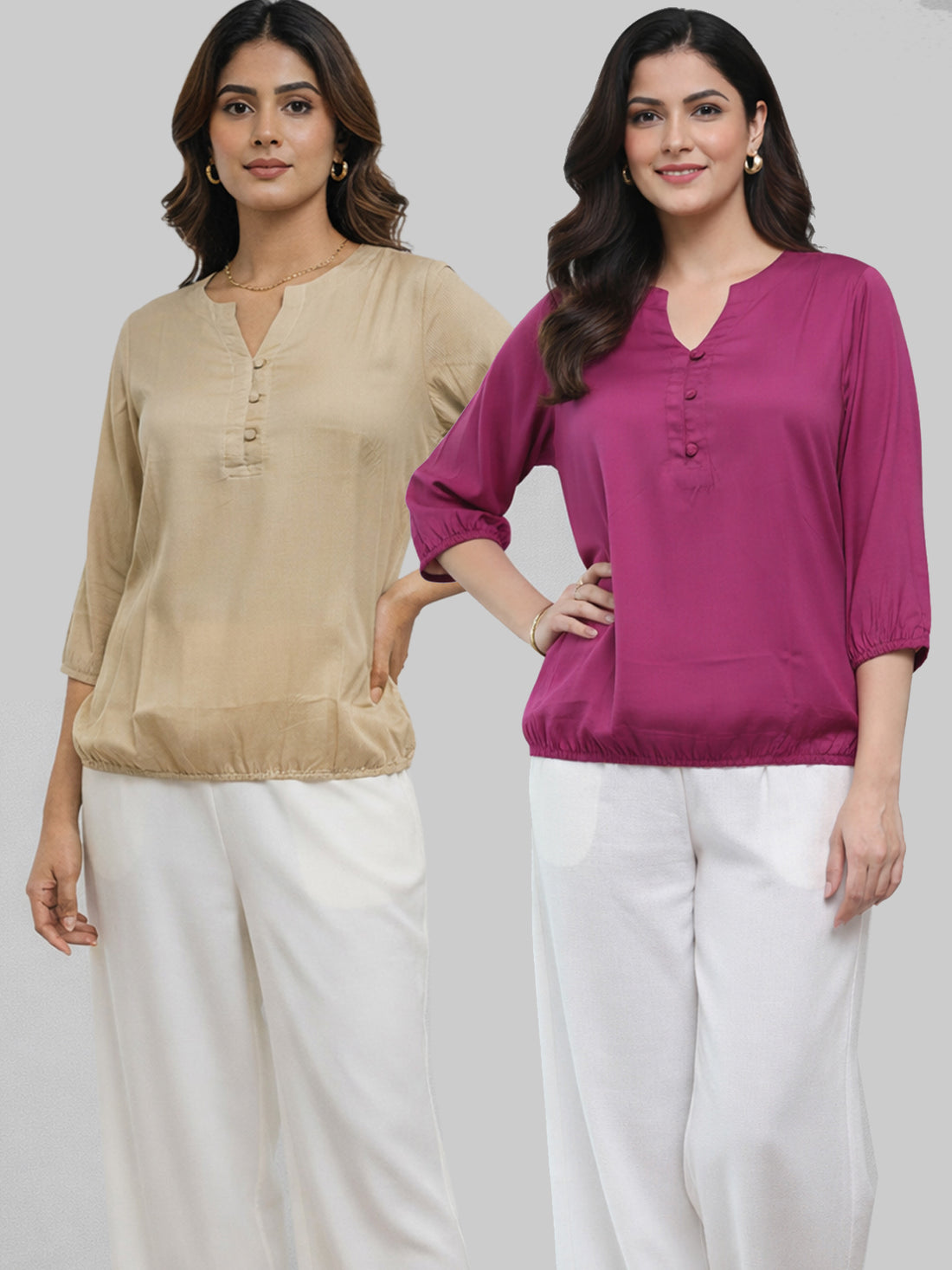 Bundle of 2 Beige & Wine Viscose Waist Fit Tops