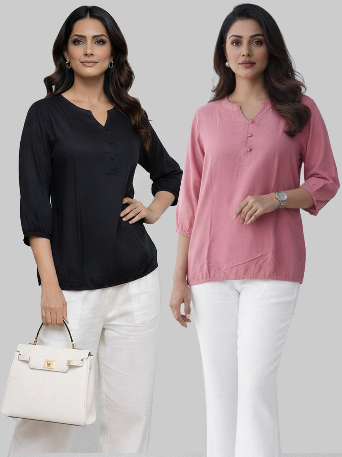 Bundle of 2 Black & MauvePink Viscose Waist Fit Tops