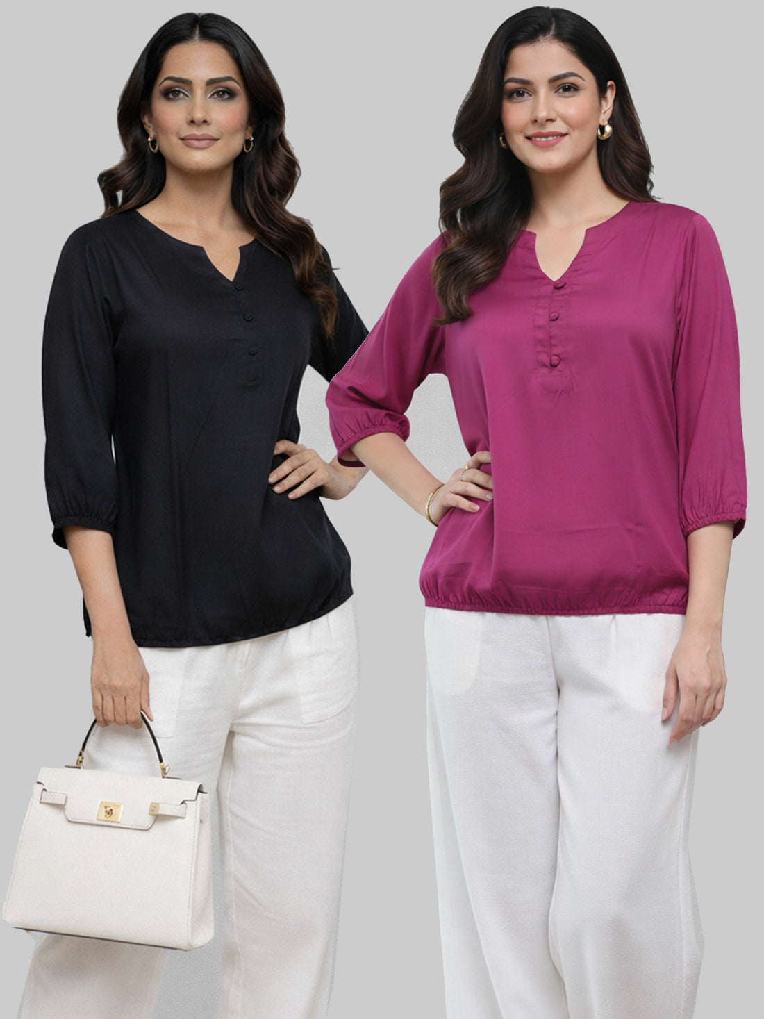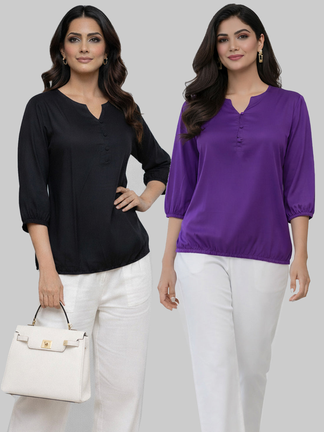 Bundle of 2 Black & Purple Viscose Waist Fit Tops