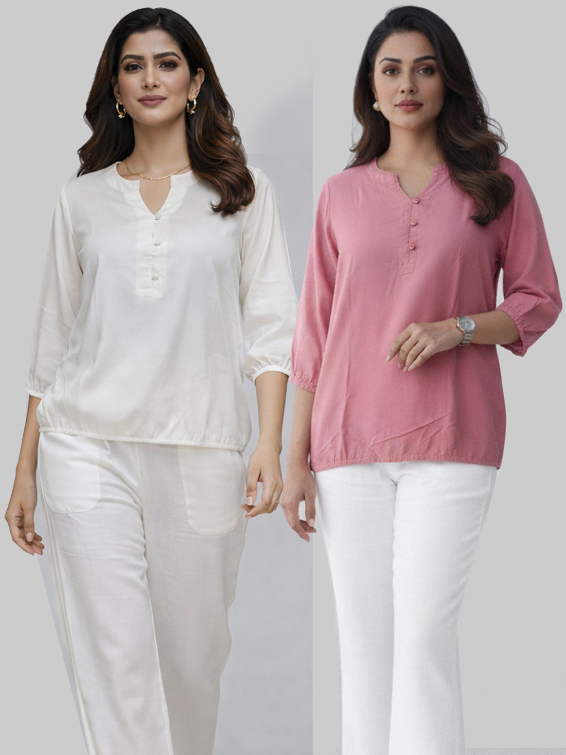 Bundle of 2 Cream & MauvePink Viscose Waist Fit Tops