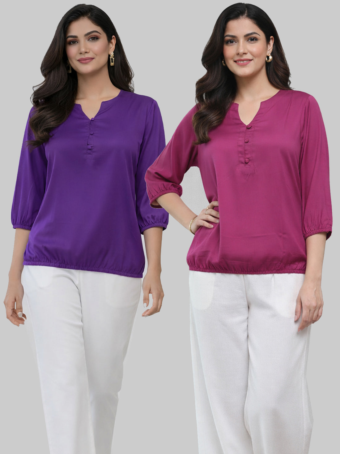 Bundle of 2 MauvePink & Purple Viscose Waist Fit Tops