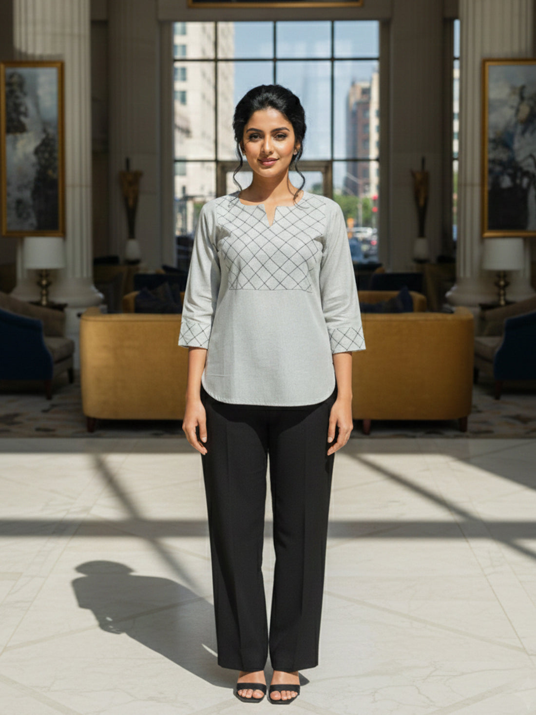 Melange Grey Cotton Handloom Yoke Design Top