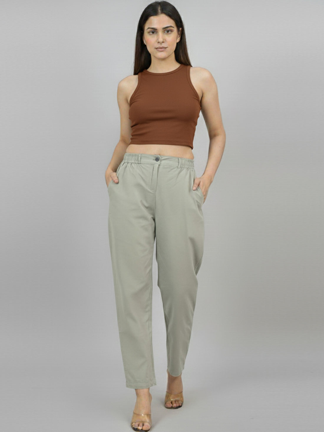 Everyday Mehendi Green Cotton Pants With Zip Closure