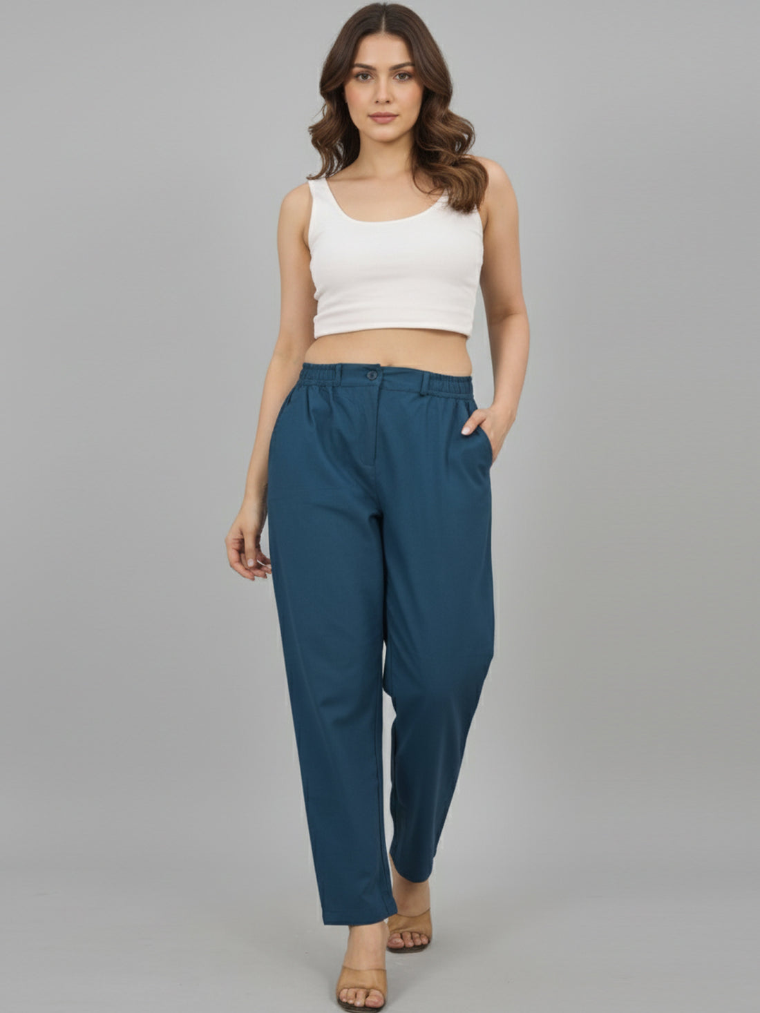 Everyday Teal Blue Cotton Pants With Zip Closure