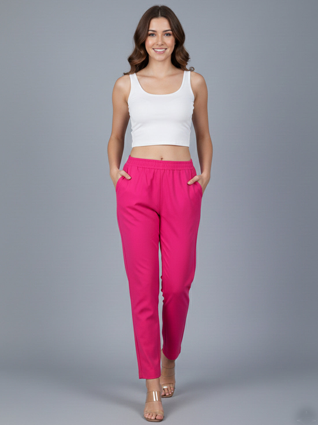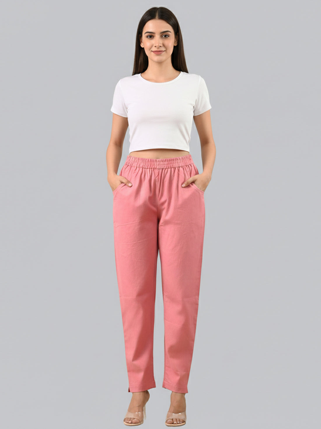 Everyday Rani Pink Cotton Fully Elastic Trouser