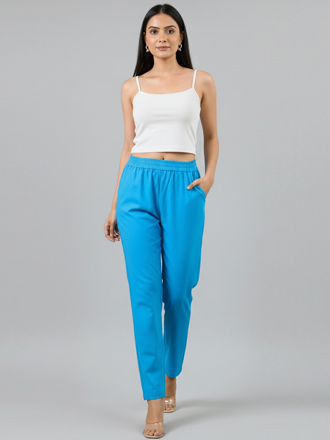 Everyday Turquoise Cotton Fully Elastic Trouser