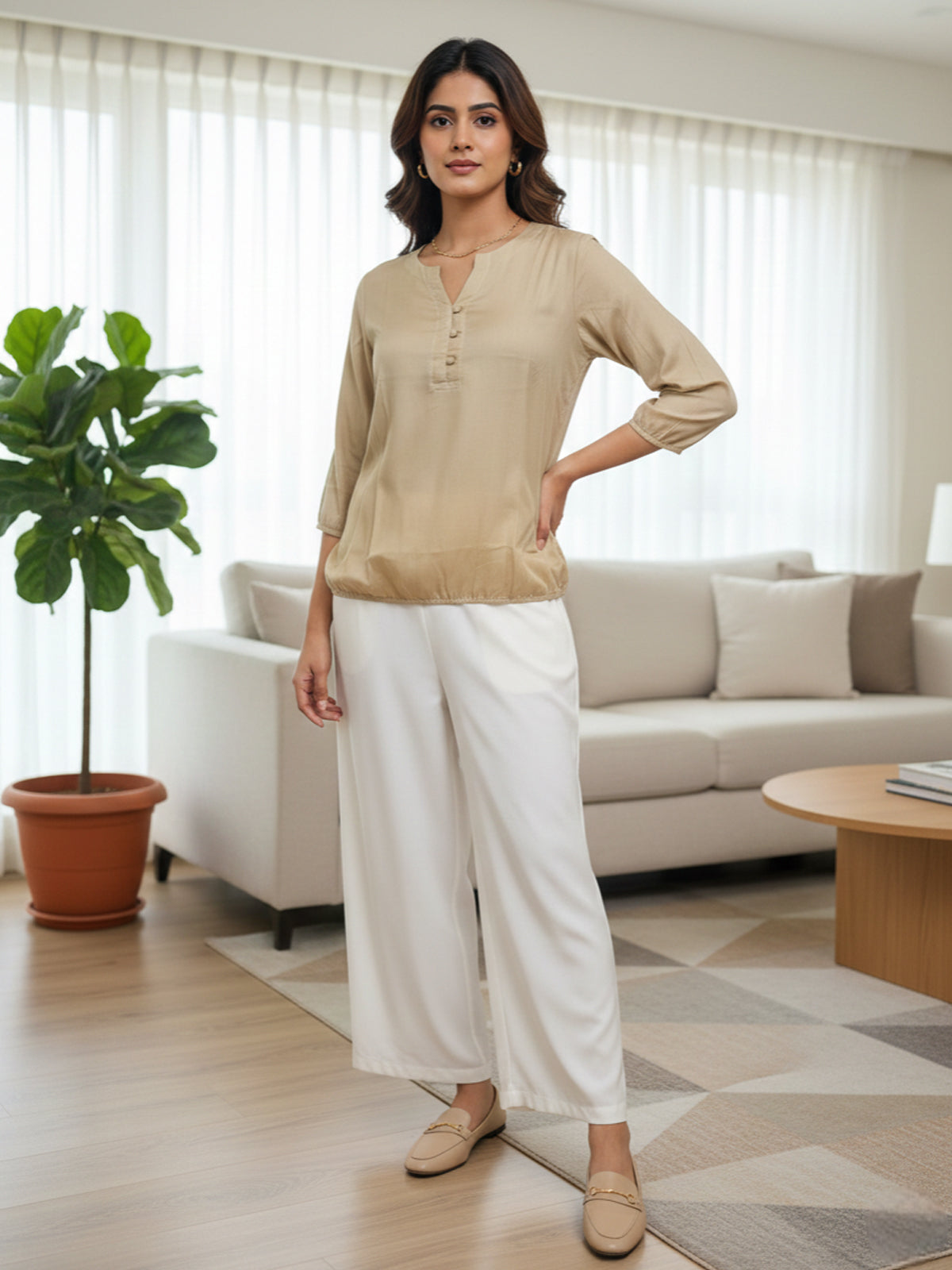 SAAV Modern Viscose Plain Tops for Women have a regular fit and a premium fabric for a beautiful appearance. Your outfits become more versatile with solid colours, Elastic Waist, enabling you to create a variety of fashionable combinations. making them ideal for work, daily wear or a night out. Shop from a wide range of Solid Viscose Top from SAAV. Perfect for your everyday use, you could pair it with a stylish pair of SAAV Trousers complete the look. Going out? Style up bodysuits with SAAV Apparel Brands