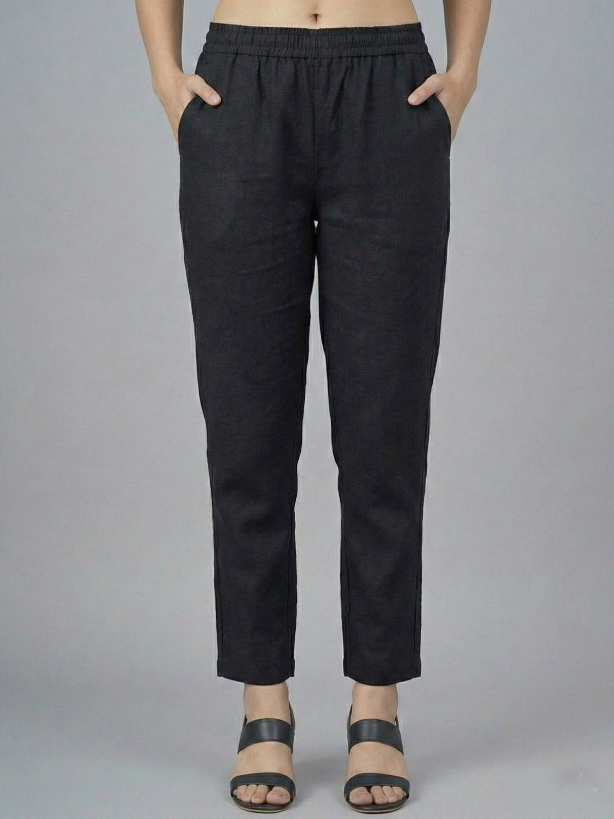 Everyday Black Cotton Fully Elastic Trouser