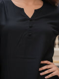 Black Viscose Elastic Waist Tops