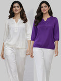 Bundle of 2 Cream & Purple Viscose Waist Fit Tops