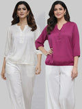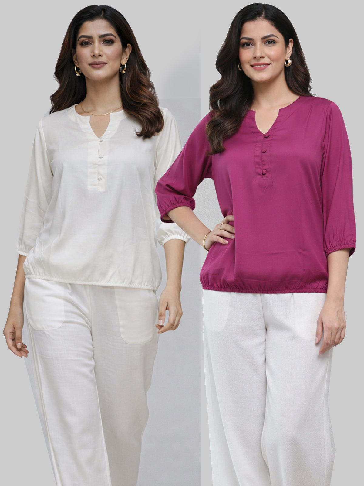 Bundle of 2 Cream & Wine Viscose Waist Fit Tops