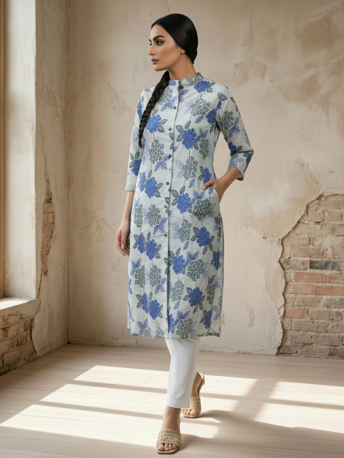 Enhance your ethnic wardrobe with this stylish Women’s Airy Linen Cotton Ikat Printed Kurta Set. Made from a breathable and lightweight linen-cotton blend, this set ensures superior comfort throughout the day. The beautifully crafted Ikat print adds a modern yet traditional charm, while the straight-cut kurta with 3/4th sleeves provides a flattering and elegant look. Paired with comfortable matching pants, this set is perfect for office wear, festive gatherings, or casual outings. Its soft, airy fabric makes it ideal for all-season wear. Step out with confidence and style in this contemporary and comfortable linen cotton kurta set.