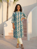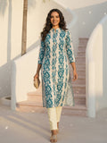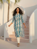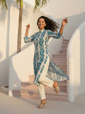 Cyan Airy Linen Cotton Straight Printed Kurta Set