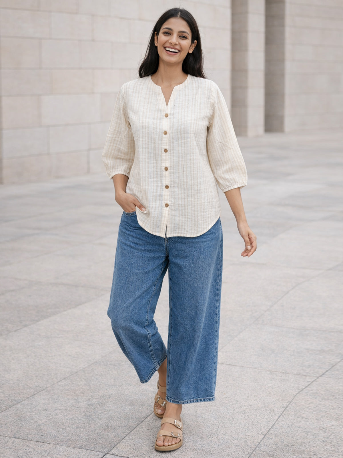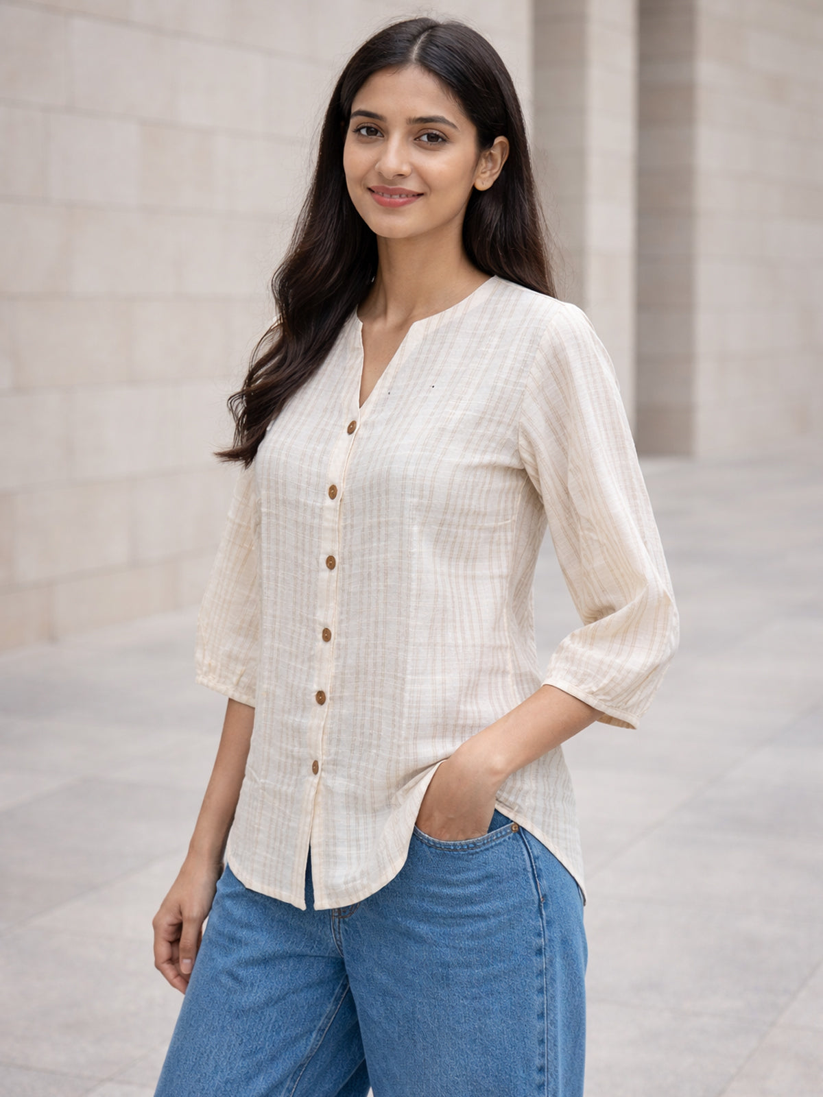 Upgrade your everyday wardrobe with this stylish striped casual shirt designed for comfort and effortless elegance. Crafted from soft, breathable fabric, this shirt offers a comfortable regular fit that is perfect for all-day wear. The classic collar, button-down front, and neatly finished yoke add a refined touch, making it suitable for both casual outings and smart everyday styling. Pair it with jeans, trousers, or skirts to create a versatile and timeless look for any occasion.