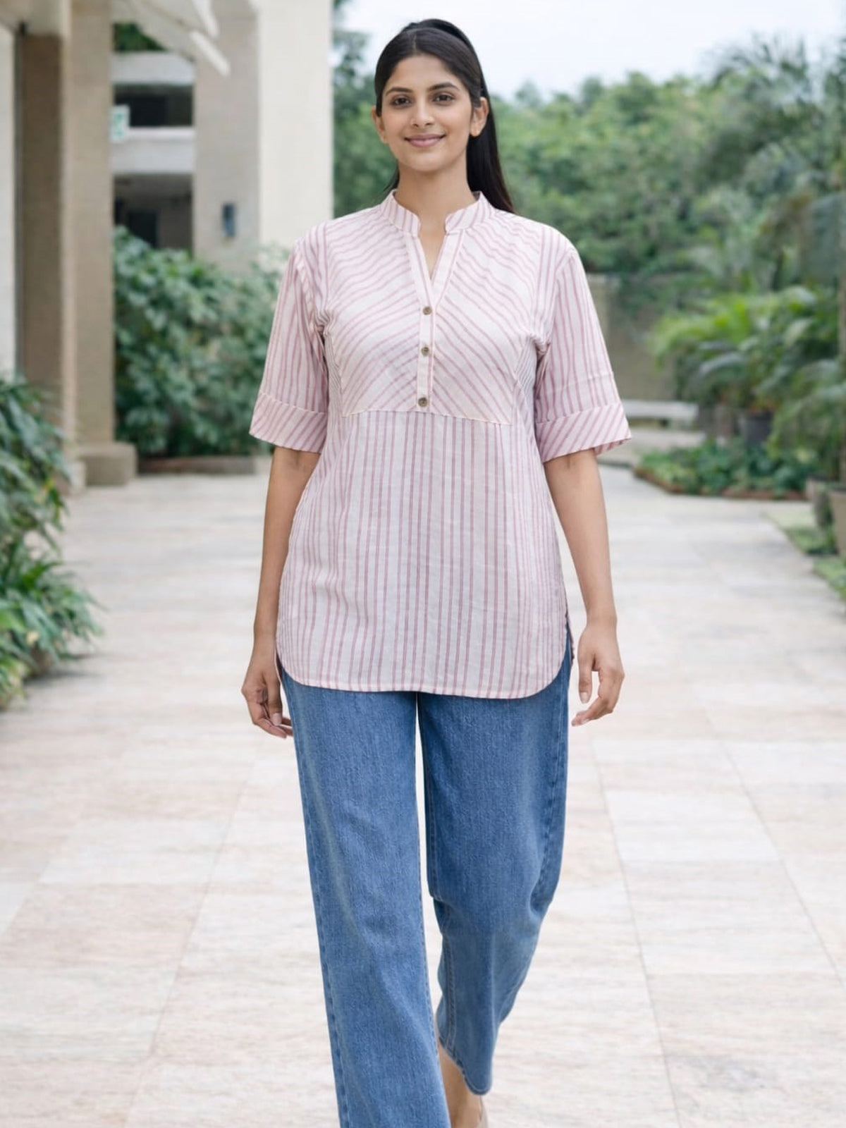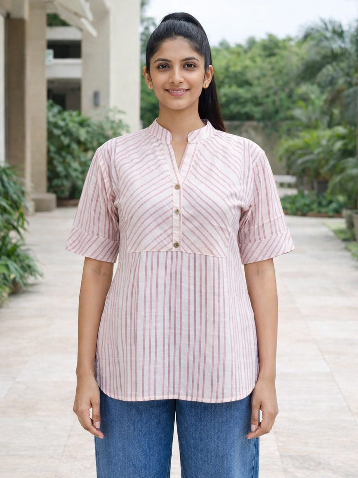 SAAV women’s stripe yoke top is designed to add simple elegance to your everyday style. Featuring a comfortable regular fit, classic stripe pattern, and stylish yoke design, it offers a perfect balance of comfort and fashion. Made from soft, breathable fabric, this top is ideal for office wear, casual outings, and daily use. It pairs effortlessly with jeans, trousers, or leggings, making it a versatile wardrobe essential.